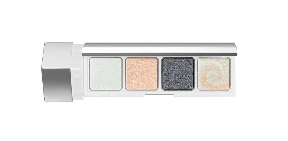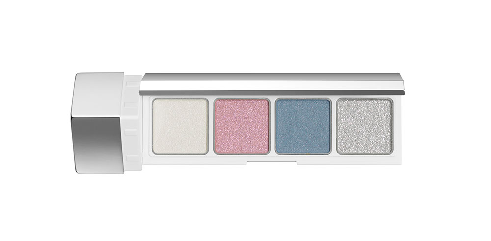 今回のコレクションの中でもとりわけインパクトのあるアイシャドウパレットは、ホワイトを基調とした近未来的なカラーの4色セット。コットン、ニット、レザー、シルク、ベルベットといった洋服の生地からヒントを得たホワイトをメインに、TARO HORIUCHI の世界をパレットの中で表現した。スリムな形とは裏腹に、ミラーもチップも内臓されており充実した機能も魅力のひとつ。さらに、透明感のあるゴールドと、木々を思わせる爽やかなグリーンにパールをブレンドし大人のパステルカラーを実現した単色のアイシャドーも登場。上品な光は重ねることで深みをだしつつも、透明感が残る一品。