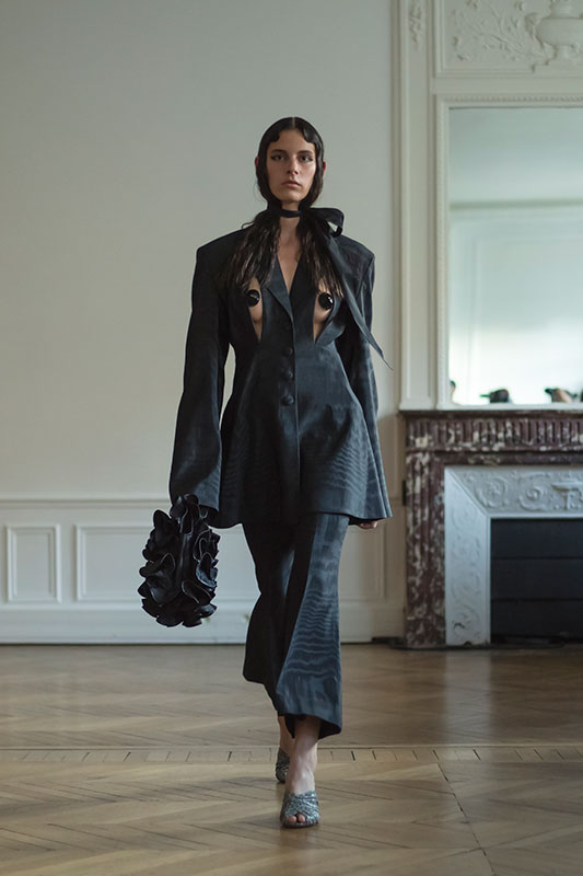 今シーズン、2回目のクチュールコレクションに挑んだ Hyun Mi Nielsen (ヒュンミ ニールソン) にパリでインタビューした。「なぜ、プレタでなくクチュールでスタートしたの?」「ゆっくり、じっくり服を作りたい。私、手仕事の技が好きなんです」ヒュンミは憧れのマックイーンに呼ばれてアトリエに入るが、その4ヶ月後に彼は死去した。4年間、Sarah Burton (サラ・バートン) の片腕としてキャリアを積み、Balenciaga (バレンシアガ) に移った。Cristobal Balanciaga (クリストフ・バレンシアガ) のアーカイブ作品に触れ、ますますクチュール服に魅了される。「私の服はプレタ・ポルテリュックスです。ブティックがオーダーしてくれれば同じ服を数点作ります。アーティストがオーダーしてくれれば1点ものの作品になります」オートクチュールコレクションはセレブだけの高級注文服だけではなく、若いデザイナーたちのカストマイズドウエアとして発表され始めている。