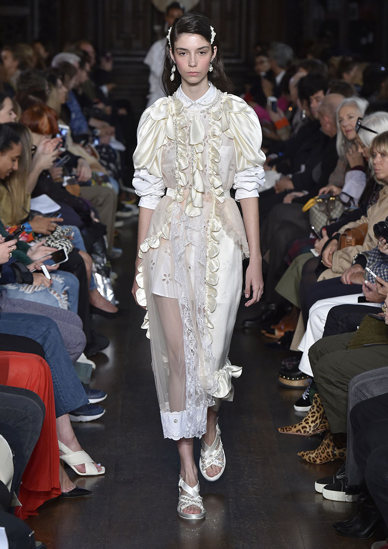 Simone Rocha 2018年春夏コレクション - 異素材を重ね、量感を出し抜け感を加えるシモーン・ロシャのハイブリッドドレス