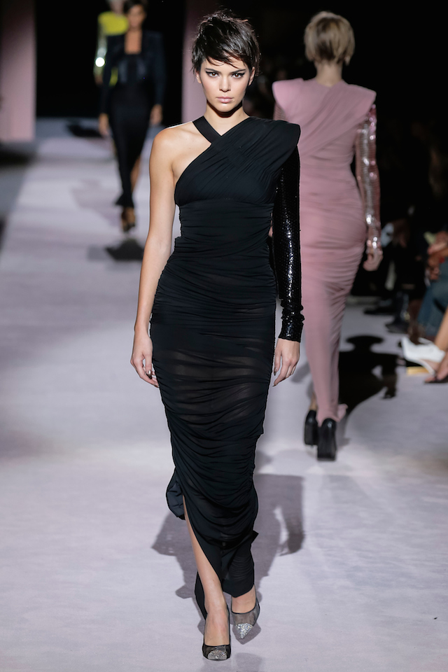 『ノクターナル・アニマルズ』がベネチア国際映画祭で銀獅子賞を受賞するなど、近年は映画監督としての活躍にも注目が集まっている TOM FORD の言わずと知れたミューズであり、初監督作『シングルマン』の主演も務めた大女優 Julianne Moore (ジュリアン・ムーア) は、ギャザーが寄せられたベルベットのフェミニンなドレスを纏って登場。さらに、フロントロウでは彼女の隣に Kim Kardashian (キム・カーダシアン) が座り、その異色の2ショットに会場の視線は釘付けになった。他にも Ciara (シアラ) や Cindy Crawford (シンディ・クロフォード)、Karlie Kloss (カーリー・クロス)、Hailey Baldwin (ヘイリー・ボールドウィン)、Chaka Khan (チャカ・カーン) といった豪華絢爛な面々により会場のボルテージも最高潮に。