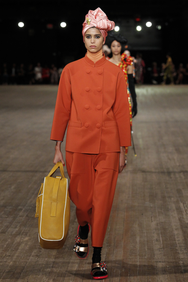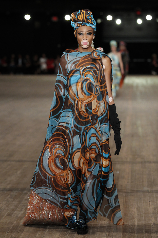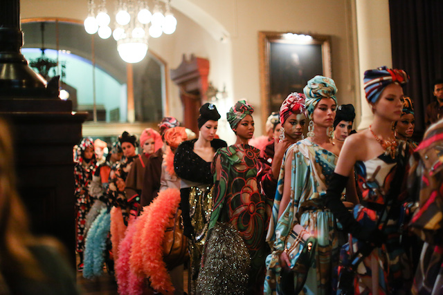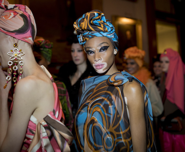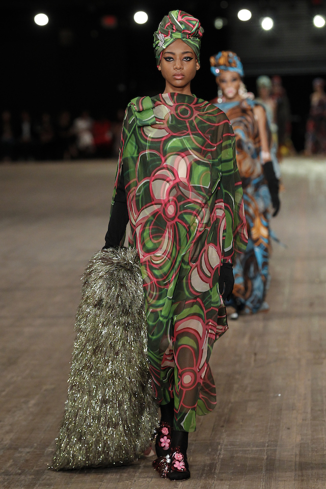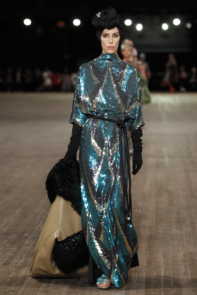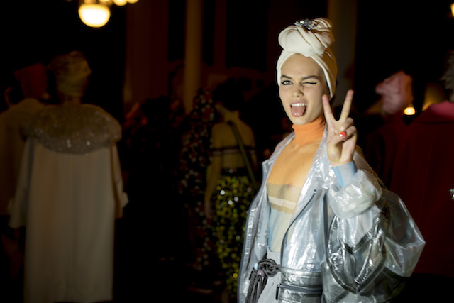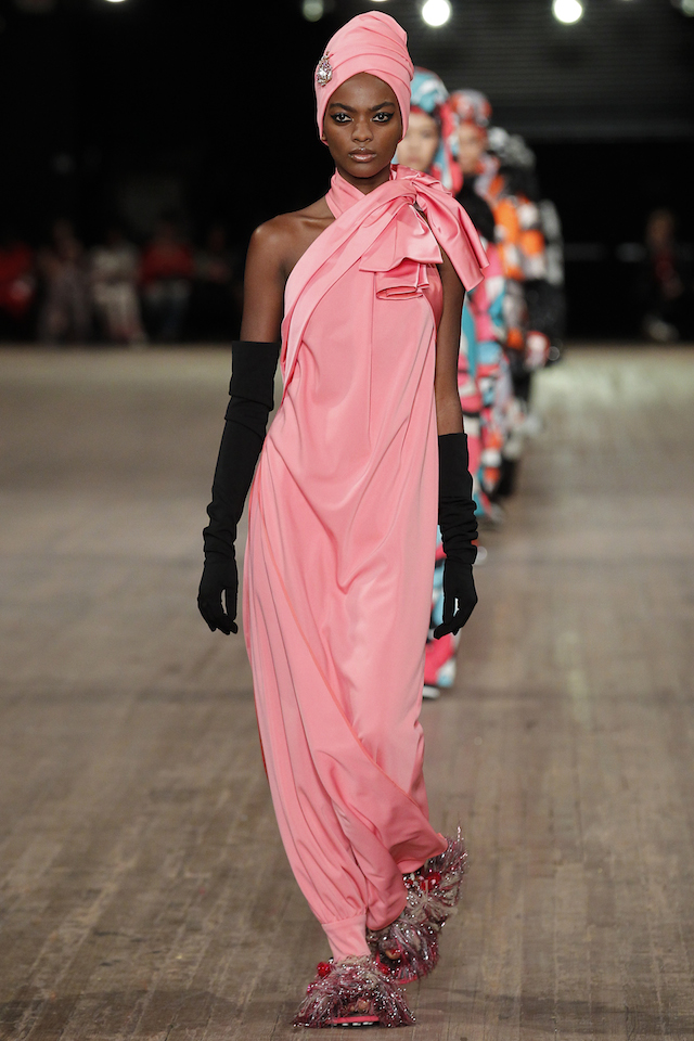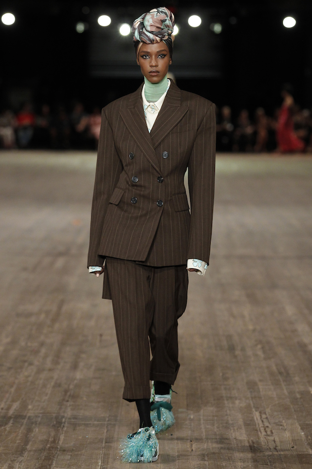 ショーで最も目を惹くのは、56ルック全てでモデルが被っているターバンだ。2009年の Met Gala (メット・ガラ) で Marc Jacobs と共にレッドカーペットを歩いた Kate Moss (ケイト・モス) が披露した伝説的なターバン姿や『The Wall Street Journal (ウォール・ストリート・ジャーナル)』で Sophia Coppola (ソフィア・コッポラ) のポートレイトなどからインスパイアを得たというヘッドピースを手掛けたのは、「世界で最も美しい帽子メーカー」と称されるデザイナーの Stephen Jones (スティーブン・ジョーンズ )。それぞれ巻き方にも意匠が凝らされており、天才デザイナーふたりの並ならないこだわりを感じることが出来るアイテムだ。