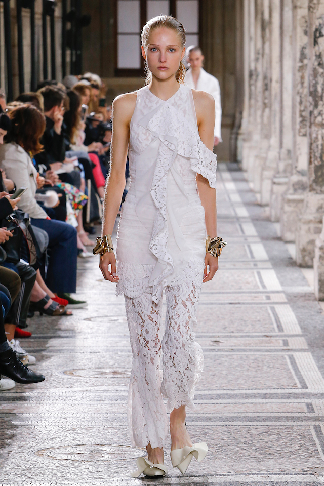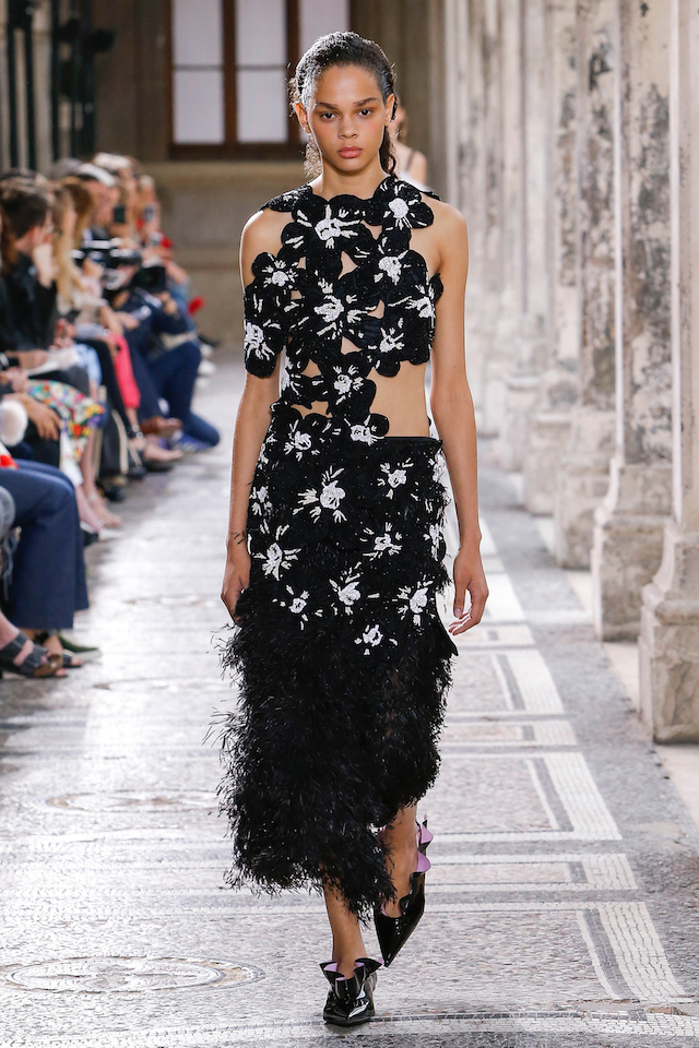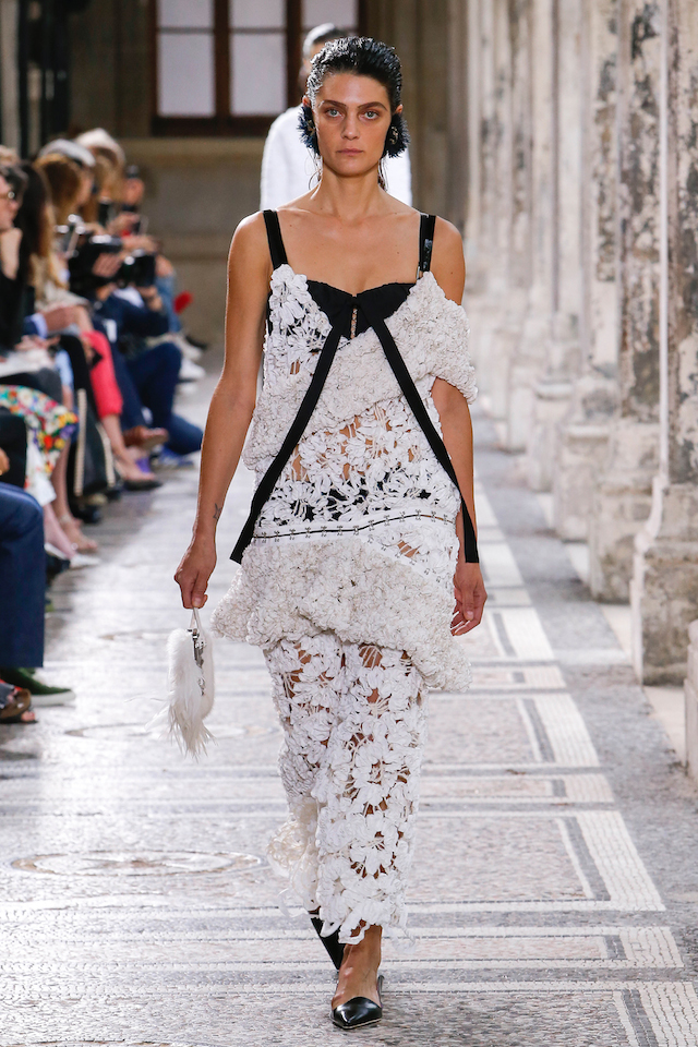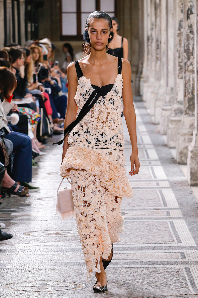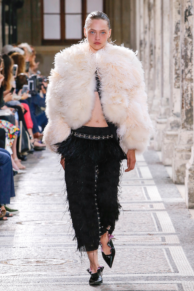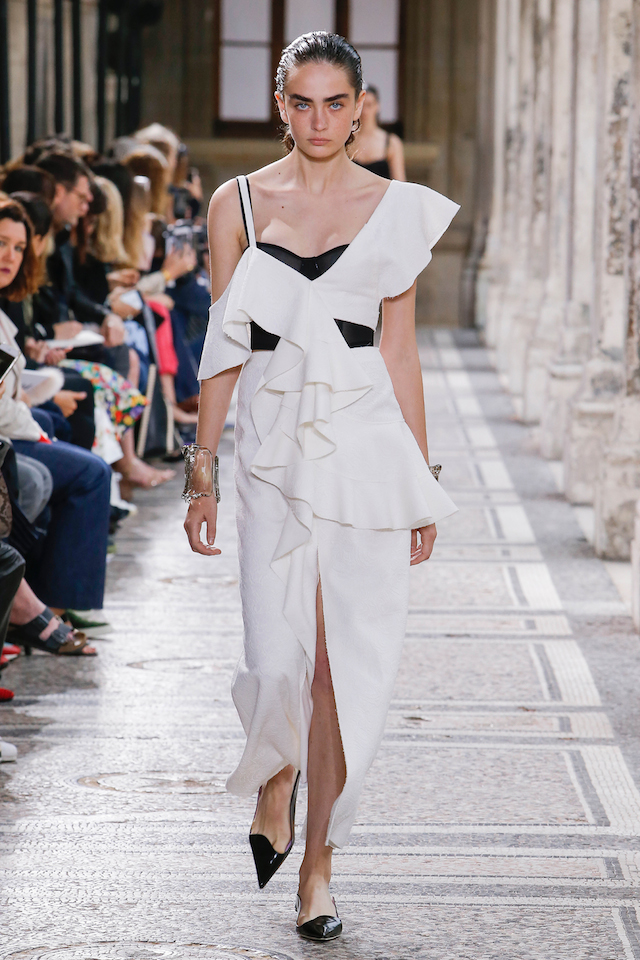 シックとエッジ、ボディコンシャスとルーズ、オーセンティシティとモダニティ…相反する要素を絶妙なバランスで表現することにより他とは一線を画すニューヨークブランドとして着実に進化を遂げてきた Proenza Schouler が新天地で魅せたのは、パリジャンとニューヨーカーの見事な融合だった。アシンメトリーなフォルムや建築的なデザイン、センシュアルなレイヤードスキルと計算し尽くされたアクセサリー使い、ブランドがこれまで培ってきたスタイルを余すことなく披露した同コレクションは、新たにフランスのアーティザンやアトリエのクラフツマンシップによって更なる高みへ。美しいレースやドレープが幾重にも重ねられたドレスや上質なニットやフローラルプリントのアンサンブル、フェザーがふんだんにあしらわれたフラッパードレス、パリでしか実現出来なかったであろう洗練されたコレクションは、ブランドの新たなステージの幕開けを感じさせてくれた。