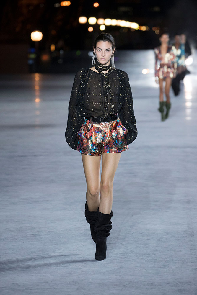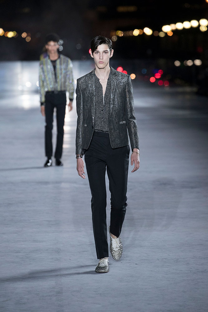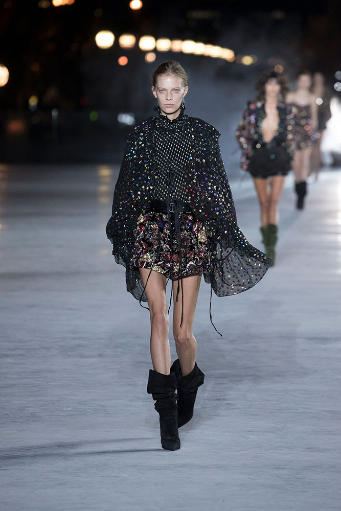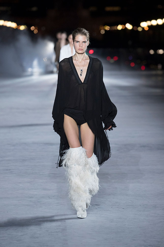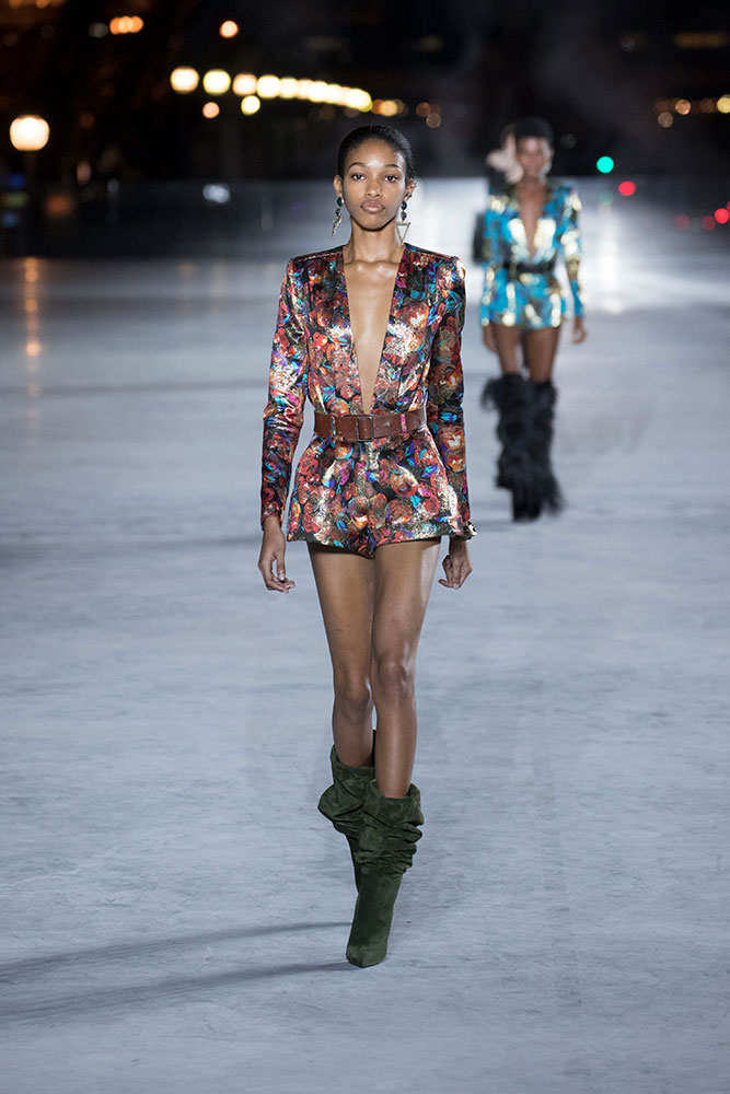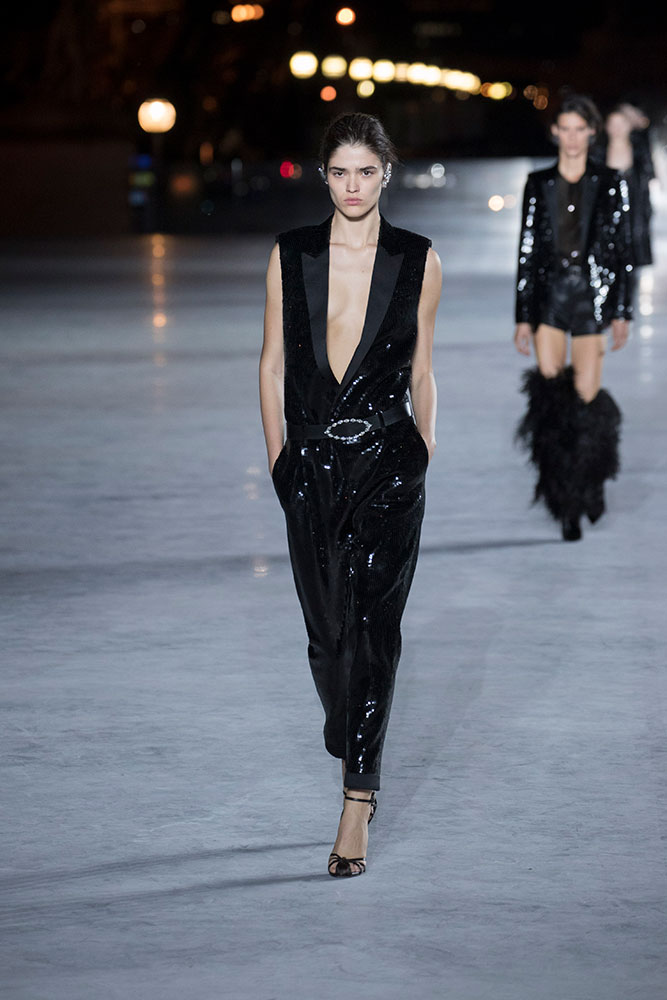 2018年サマーコレクションがスタートした。Saint Laurent (サンローラン) から白レザーの封筒に入った厚いインビテーションが届く。添えられた手紙には「20:00きっかりにショースタート、19:45にドアはクローズ」と書かれていた。何の仕掛けがあるのかと早めに会場へ向かった。トロカデロの庭にオープンなステージが設えられていて、真横にエッフェル塔がどっしりと佇んでいる。なるほど、20:00のエッフェル塔のライティングと共にショーがスタートした。