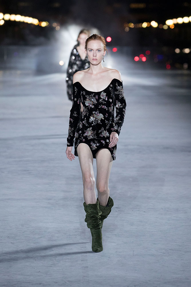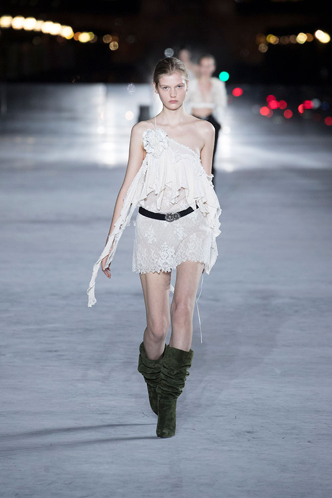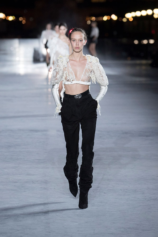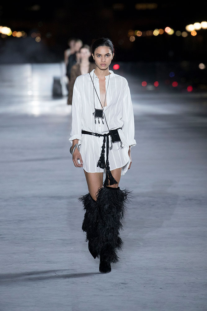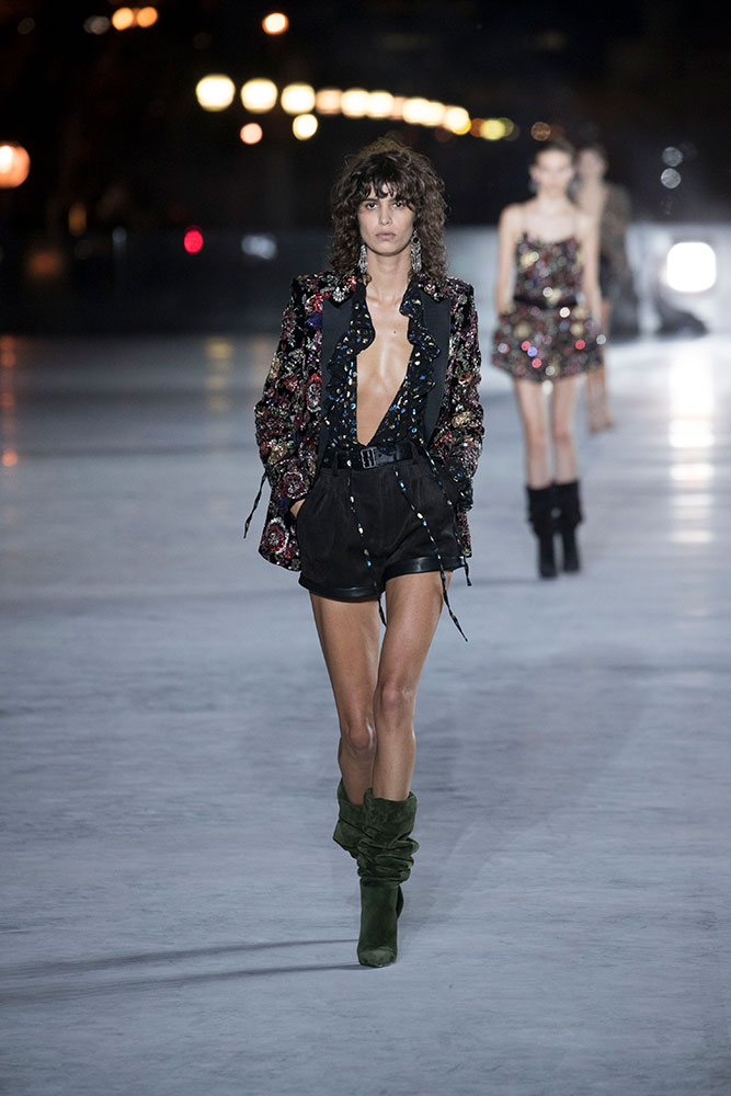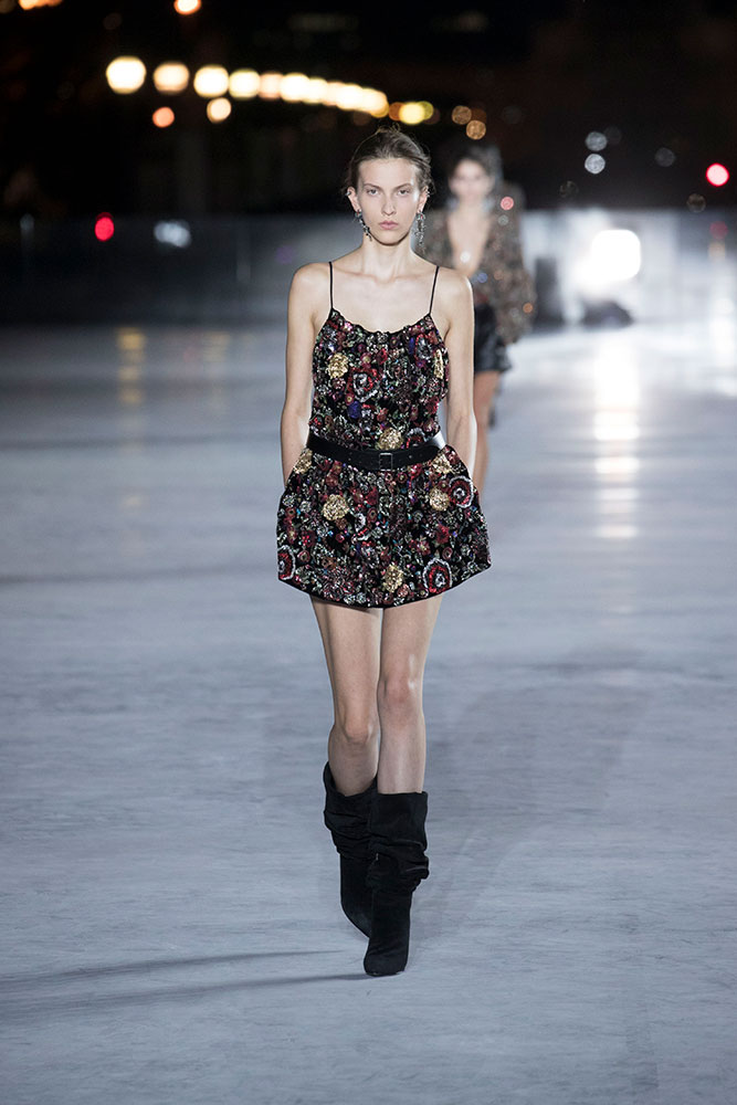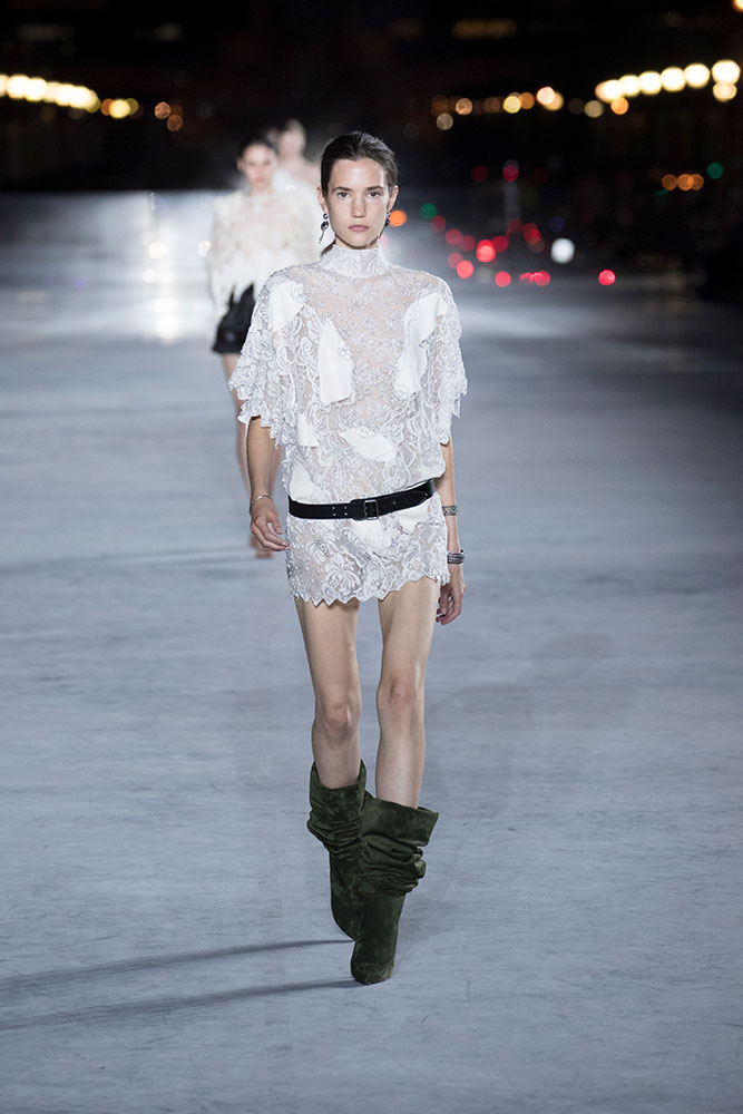 2018年サマーコレクションがスタートした。Saint Laurent (サンローラン) から白レザーの封筒に入った厚いインビテーションが届く。添えられた手紙には「20:00きっかりにショースタート、19:45にドアはクローズ」と書かれていた。何の仕掛けがあるのかと早めに会場へ向かった。トロカデロの庭にオープンなステージが設えられていて、真横にエッフェル塔がどっしりと佇んでいる。なるほど、20:00のエッフェル塔のライティングと共にショーがスタートした。