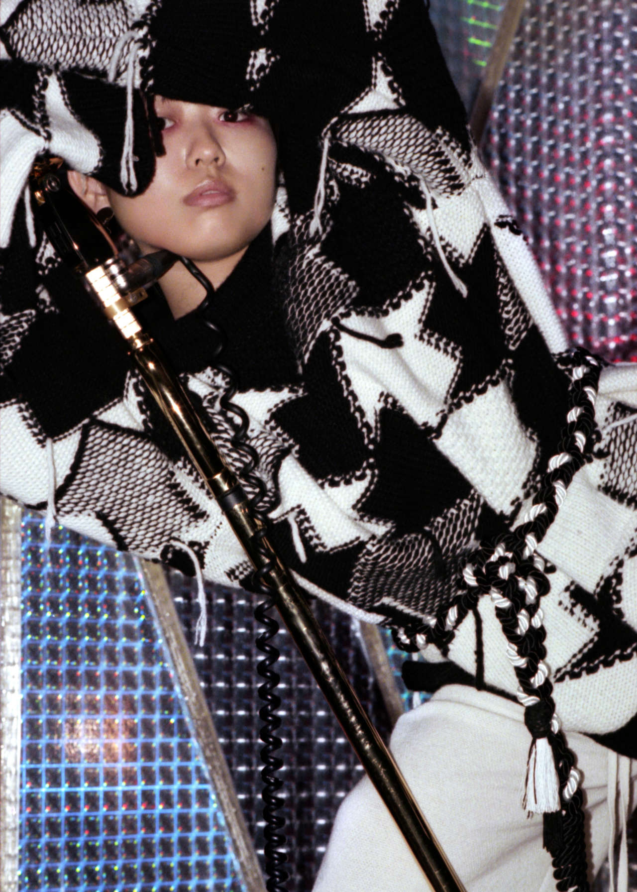 コレクションのインスピレーションと同様の物語の中でストーリーを構成しようとしました。日本の文化と日本らしいアイデンティティだけでなく、反逆や個性といった要素も含まれています。日本を訪れたのはたった一度ですし、日本の文化について知っていることといえば、他の人の個人的な逸話や映画、写真、本から得たものなので、私が体験した日本というのは、むしろある種盲目的でゆがんだ発想だと思います。とても飽和していて、生活を圧倒しているというのが、私の東京の印象。日本は過激と矛盾の文化だと思います。東京の街のエネルギーと強烈さを捉えたいと思いました。東京に対する私のビジョンは、外部の者の視点なので、東京の街をありのままに体現するキャストを起用することはとても重要でした。なので、Chiharu と Aya のチームがこの物語における究極の焦点なのです。彼女たちは演技をせずとも、十分に彼女たちらしさを発揮していたので物語を作り上げるのにとても役立ちました。