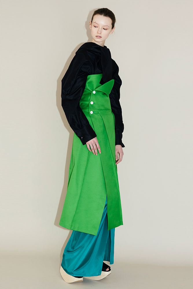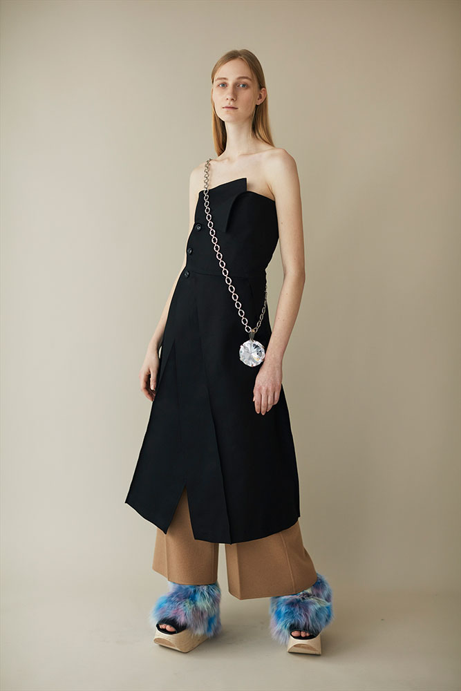 熊切秀典を中心に4人のチームでデザインを手がけているブランド beautiful people は2017-18年秋冬シーズン、パリ ファッションウィークでの記念すべきデビューコレクションを発表。「和」と「洋」、「東京POP(ネオギャル)のモンスターカラー」と「パリシックなBCBG(パリの上流階級的な、の意)」という二つの相反する要素をハイブリッドし、新たなベーシックを提案した。和服から着想を得た畳めるトレンチコートやジャケット、綿帽子のパターンをベースに展開されたシャツやブルゾン、和服の帯をレイヤードに落とし込んだベルトなど「洋服」に「和服」の要素を取り入れたコレクションは、国内外から高い注目を集めている。特に和服のたたみ線や直線的なラインを取り入れた「WAFUKUトレンチコート」は、京都服飾文化研究財団に収蔵が決まっており、買えるミュージアムピースとして大変価値のあるアイテムになっている。