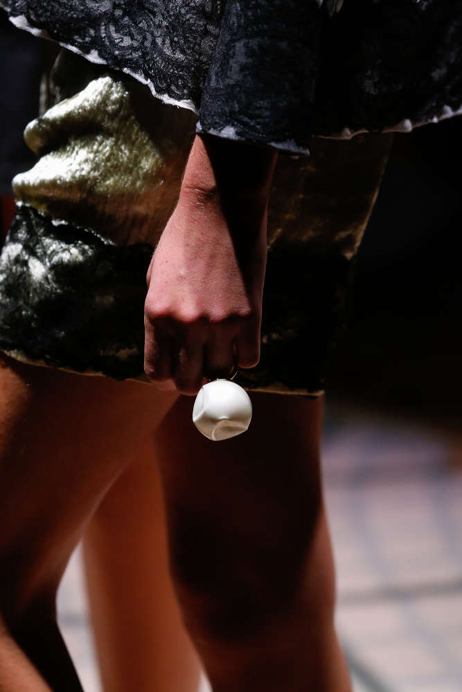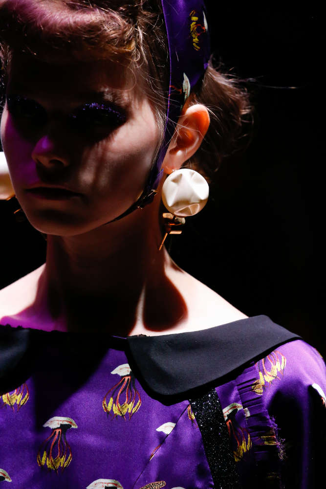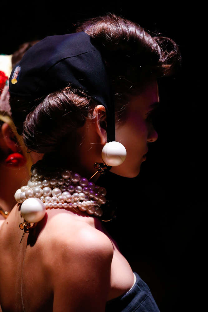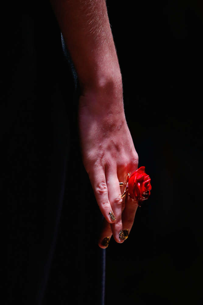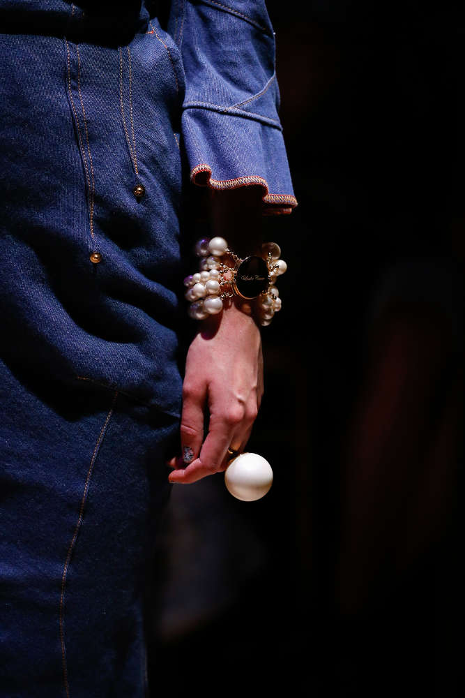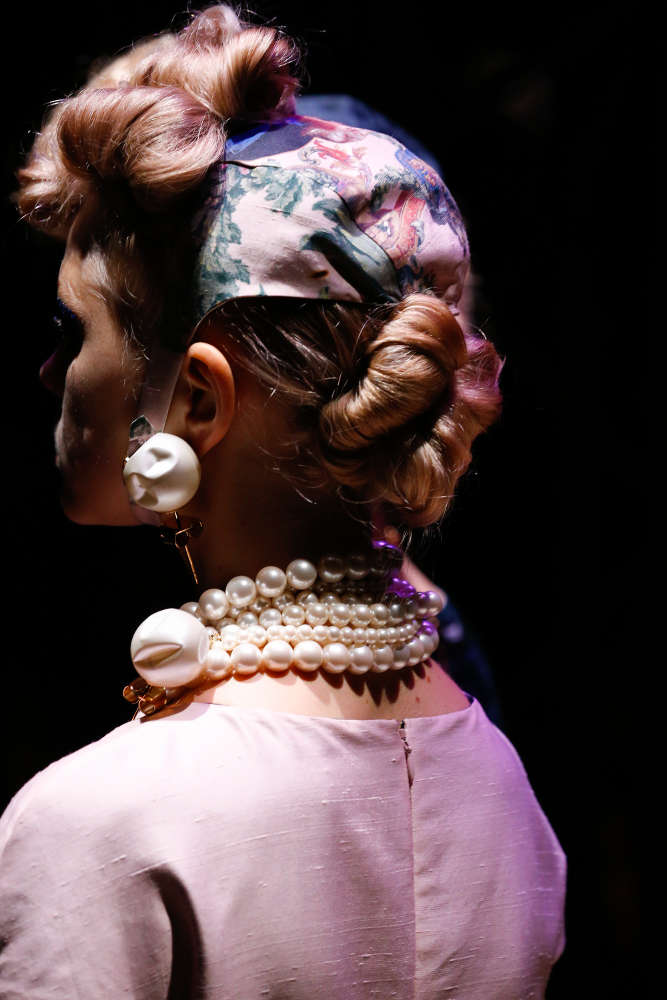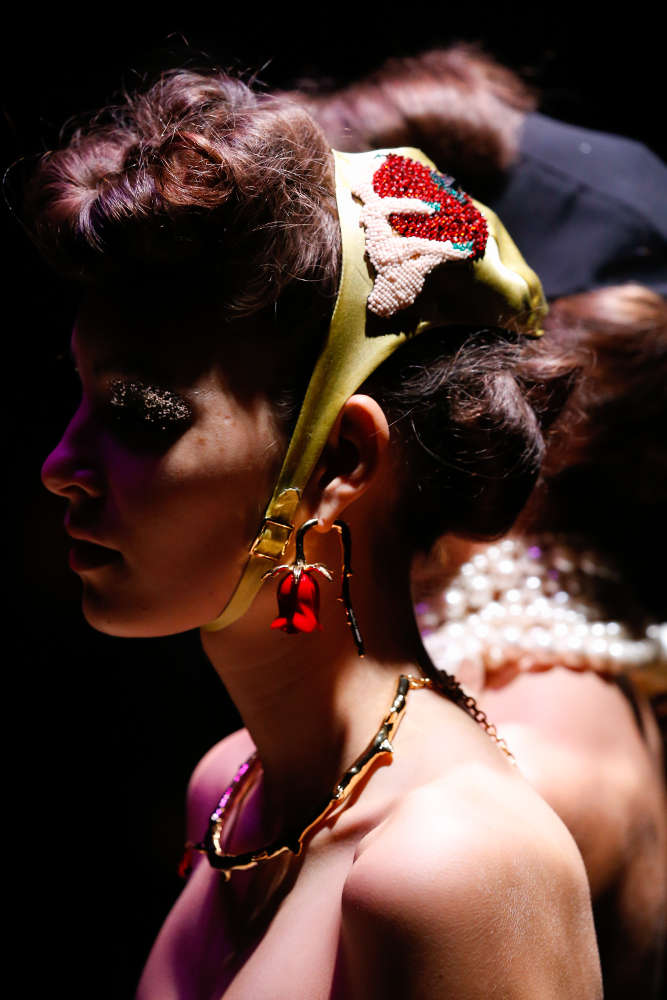 本コレクションは、米国の著名写真家兼映像作家の Cindy Sherman (シンディ・シャーマン) ともコラボ。彼女は、コンセプチャル・セルフポートレイトと呼ばれる自身を被写体とした作品で知られており、コレクションでは彼女のトレードマークとも言うべきこの自画像がチョーカーやブレスレットのロケットに配されている。他にも、いばらやローズといったモチーフや「しぼんだ」パールなどが用いられており、UNDERCOVER のダークロマンティシズムな世界観を忠実に表現したコレクションに仕上がっている。まずは、ランウェイのルックで本コレクションをチェックして欲しい。