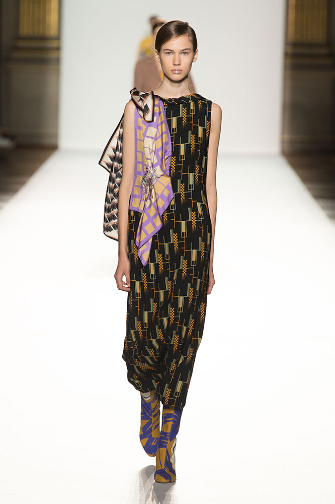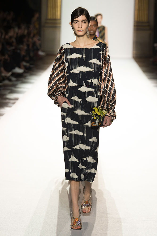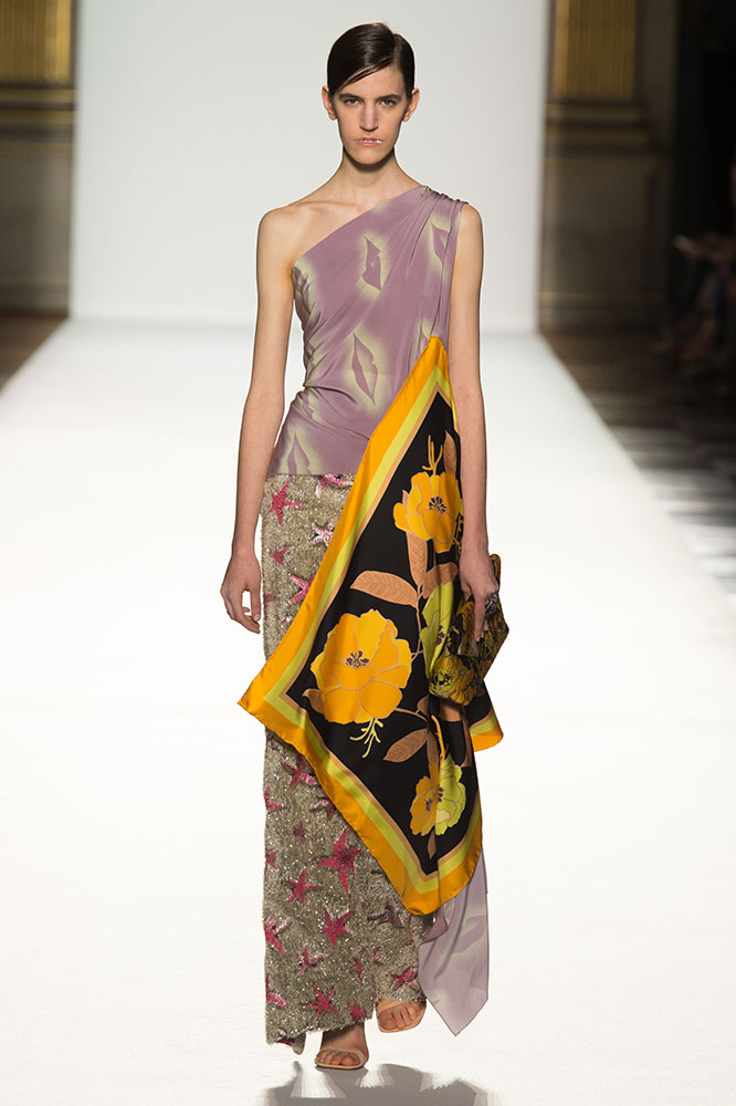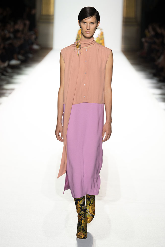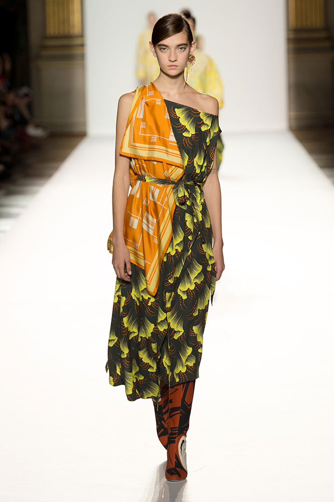 Dries Van Noten 2018年春夏コレクション | プリントのスカーフ使いで、流れるようなドレスを並べたドリス ヴァン ノッテン