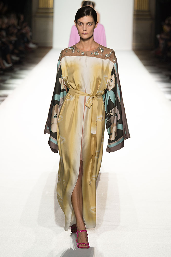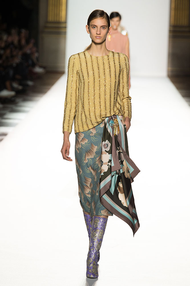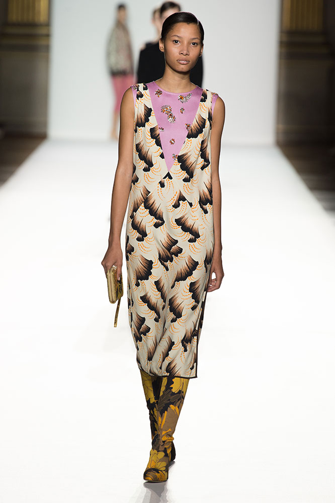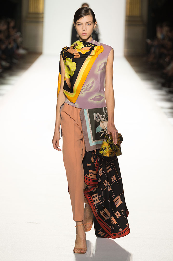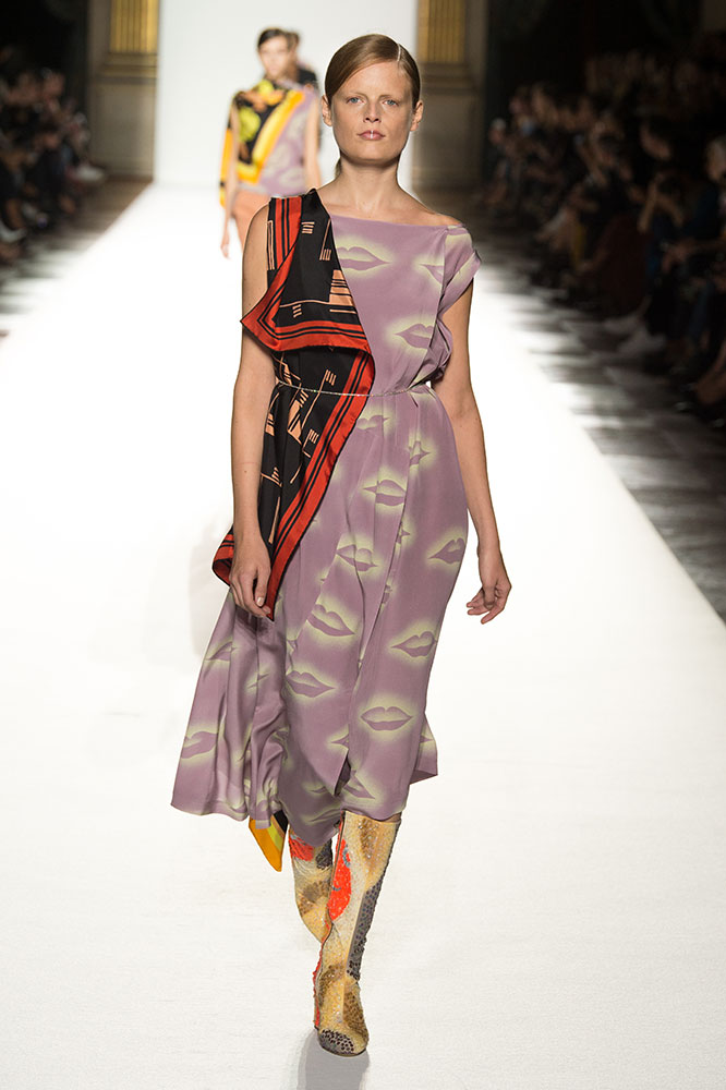 Dries Van Noten 2018年春夏コレクション | プリントのスカーフ使いで、流れるようなドレスを並べたドリス ヴァン ノッテン