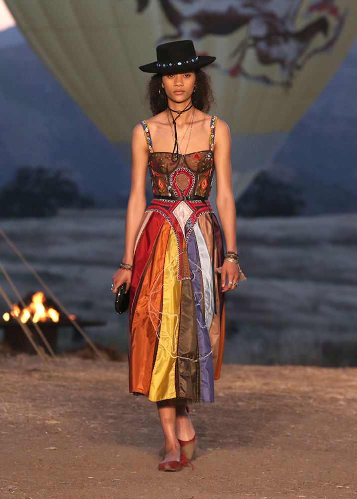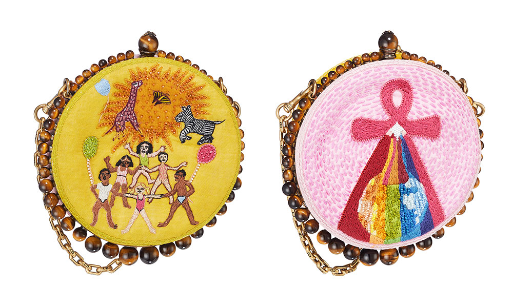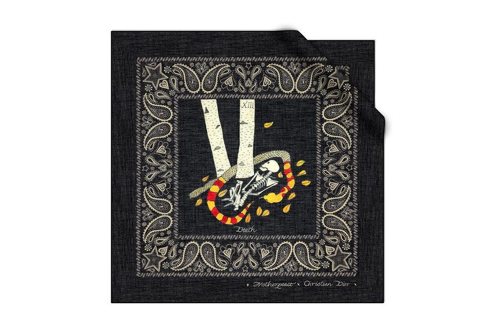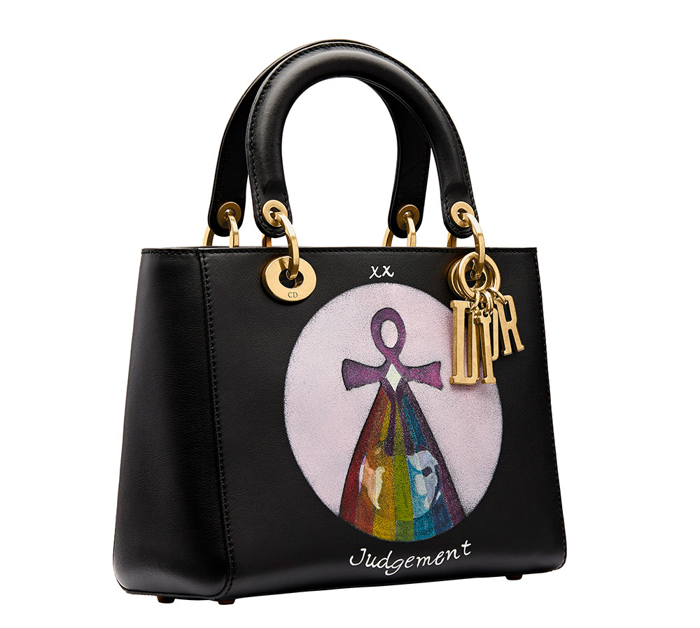Maria Grazia Chiuri (マリア・グラツィア・キウリ) がメゾンの2018年クルーズコレクションのために着想を得たのは、Karen Vogel (カレン・ヴォージェル) と Vicki Noble (ヴィッキ・ノーブル) によって1970年代に生み出されたラウンド型のタロット『Motherpeace (マザーピース)』。「カレン・ヴォージェルとヴィッキー・ノーブルのタロットカードはパワフルであり、心を癒し強くしてくれる フェミニズムを芸術的に表現しています。このタロットをポップにして改めて使ってみたいと思いました。タロ ットとつながる占星術は、これもまたムッシュ ディオールにとって大切なもの。占いやタロットはメゾンのコー ドの一部。それをクリスチャン ディオールの歴史を究める中で発見しました。各コレクションでメゾンのコード を違った視点から再解釈しながら、独自に表現しています」と語った彼女は、「THE WHEEL OF FORTUNE (運命の輪)」「THE GRAND PRIESTESS8 (女教皇)」「THE SUN (太陽)」といったタロットに描かれている神秘的な絵をフェミニズムの視点で新たに解釈。刺繍やプリント、ハンドペイントなどを用いて、ラウンドクラッチやメゾンのアイコンバッグである「Lady Dior (レディ・ディオール)」「Dioraddict (ディオールアディクト)」、シルクスカーフ、セーター、パッチ ボンバージャケット、レザー ライダースジャケットに落とし込んでいる。