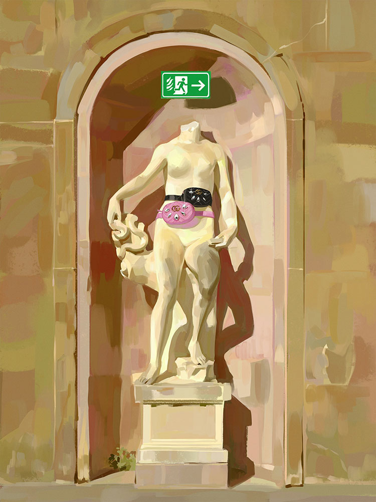 そして、本キャンペーンの目玉となるのが、これまでもコラボレーションしてきたコラボレーションをしてきたスペインのアーティスト Ignasi Monreal (イグナシ・モンレアル) が手がけたデジタルアートワークを収録したギフトギビング ブック。ギリシャ神話で語られる「イカロスの墜落」にインスピレーションを得たストーリーが、ギフトアイテムを織り込みながら展開されている。Ignasi Monreal は、2015年のデジタルアート プロジェクト #guccigram から Alessandro Michele とコラボをスタートさせ、本プロジェクトの他にも、2018年クルーズコレクションでは彼の作品がプリントされたアイテムが発表されるなど、ブランドのクリエーションに多方面から多方面から関わりを持つ存在となっている。
