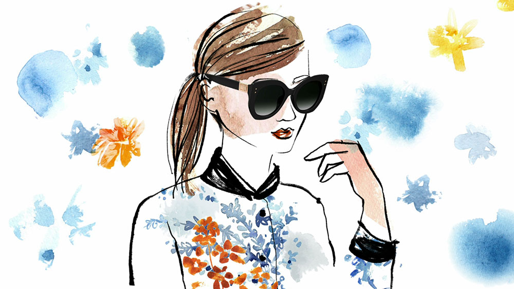 「A day with Peekaboo」と名付けられたアニメーションビデオでは、朝食や公園、イヴニングカクテルまで、女性の日常のあらゆるシーンを舞台に「Peekaboo」サングラスと Cinzia Zenocchini の描いた2018年リゾートコレクションのアイテムを纏った女性が登場。アーティストらしいエレガントで明るい色合いの水彩画で表現されたソフトで幻想的な世界観が、見事サングラスのデザインとマッチしている。