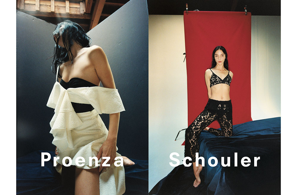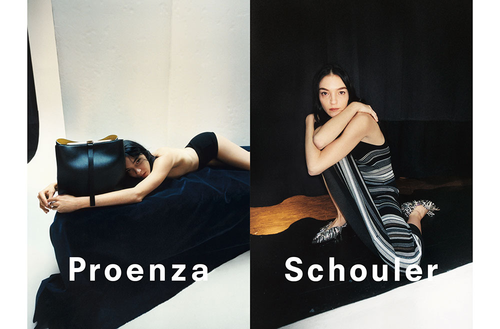Jack McCollough (ジャック・マッコロー) と Lazaro Hernandez (ラザロ・ヘルナンデス) が手がける Proenza Schouler は先日、新ライン PSWL をローンチしたばかり。ブランドのミューズである Chloë Sevigny (クロエ・セヴィニー) が顔を務め、話題を博した。今回のキャンペーンの顔を務めたのは、Mariacarla Boscono (マリアカルラ・ボスコーノ)。20年ものキャリアを持つスーパーモデルだ。