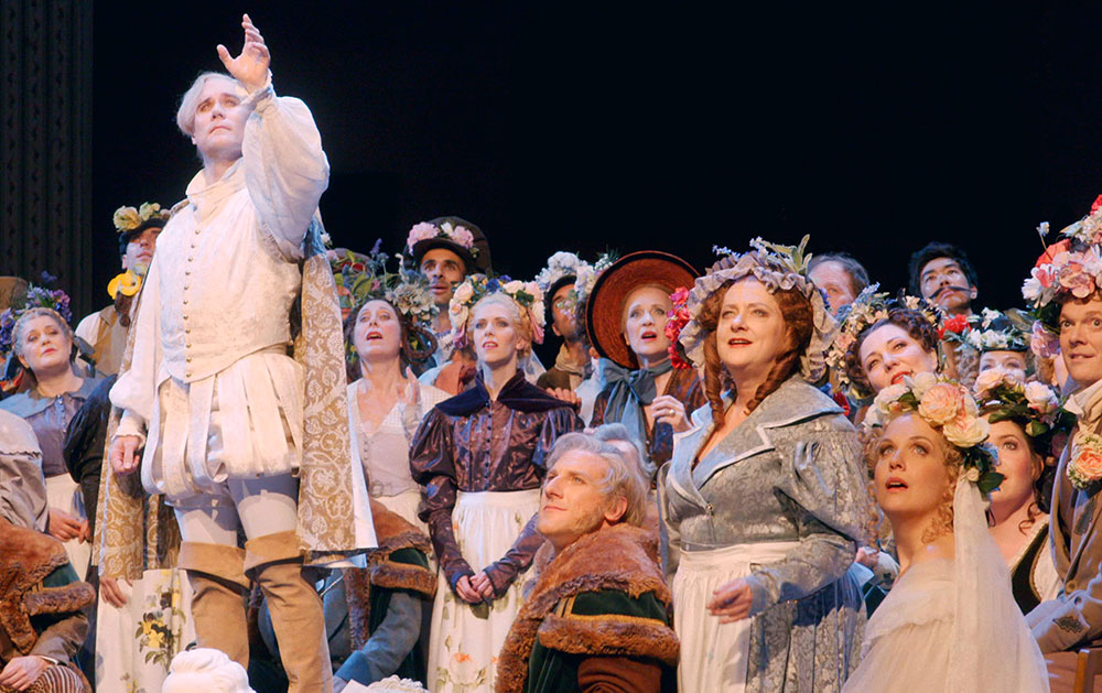 バレエもオペラも、それだけを撮影せず、常に誰かの視点を通して映し出すようにした。そこに美や振付、歌、音楽などをさらに投影していくんだ。被写体に、とても人間的な感情を投影することで、自己同一化を促した。僕にはカギとなる言葉があって、これは映画の地平でもあるんですが、「私はオペラドキュメンタリーを作っている」という言葉です。オペラについては何も知らなかったけれど、もともと音楽理論には興味があったので、書籍を読み漁ってオペラの形式や構造、方法について学んだ。序曲がどんなものだとか、どんな終わり方をするとか。そういったものを、映画を作るうえで活かしたいと思ったんだ。今回の映画を作るにあたっては、オペラの物語だけではなく、形式も意識した。恐怖の効果とかコラージュとか、一つの「場」から次の「場」への移行とかね。「場」は分離されていることもあれば、音楽やフレーム外でつながっていることもある。コーラスをフレームの外に置いたりしてね。こうしたことは純粋に形式の問題で、僕は非常に興味があった。だからこの映画は「場」で構成し、映画全編を通して登場する人物がいる。集団、アンサンブル、グループ、コーラスの場面がある一方で、ソリスト、ソリチュード、アリアの場面もある。後者はしばしば内省の場面になる。極めて孤独な場面も作って、映画全体をオペラの形式のように構成したんだ。あとは滑らかさも意識した。スピード、速さ、名人芸。一つのものから次のものへ、いかに移るか、どのように読むか。喜びの感情も全面に出しました。僕の前作の『L’Expérience Blocher』は、かなり暗い映画だったんです。デモクラシーの危機に瀕して、悲観的な感情もあった。そんな暗い感情、悲観主義に対抗して、今回僕はネガティブな感情に挑むような陽気で前向きな映画を作ることにした。それが僕をオペラの世界に飛び込ませたんだよ!