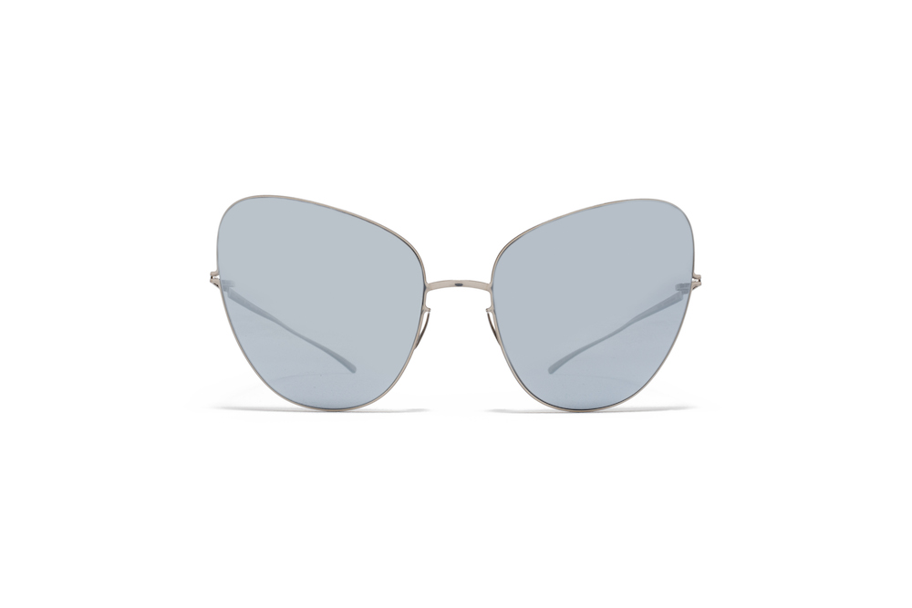 歪められ、引き延ばされたようなバタフライのシェイプが独特の存在感を放つ「MMESSE018」は、妖しく光る虫の目を彷彿とさせるユニークな風貌のサングラス。楕円形のシェイプとダブルブリッジが特徴的な「MMESSE019」は、小柄で優しい表情を演出しつつも、さりげなく反抗的なオーラを放ち、90年代のタフな雰囲気を醸している。