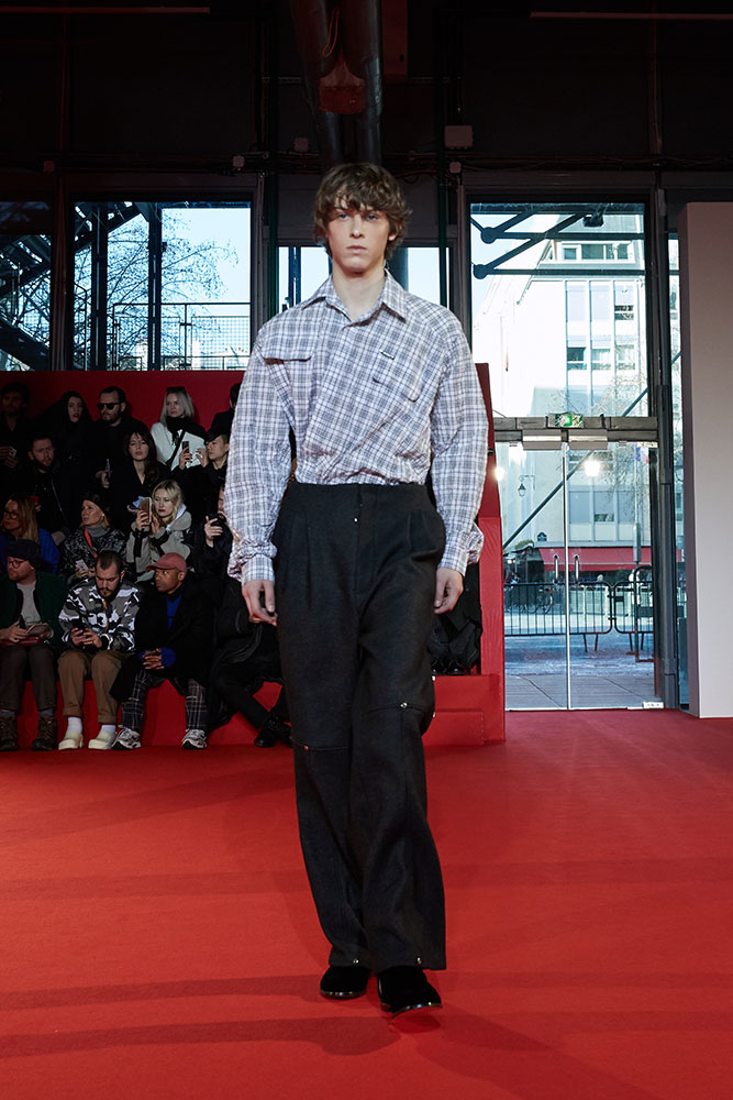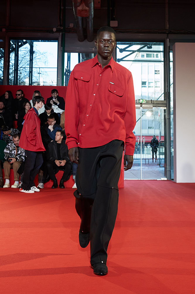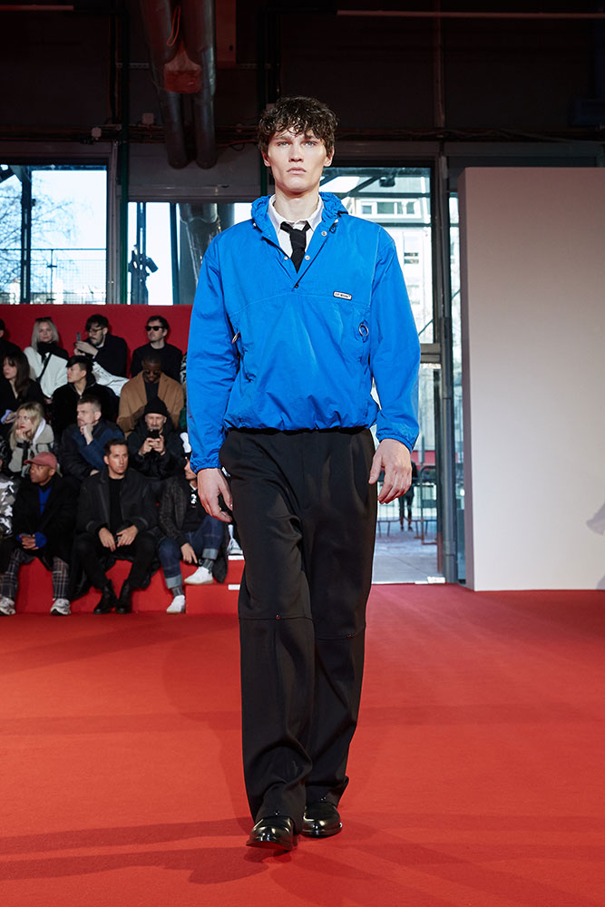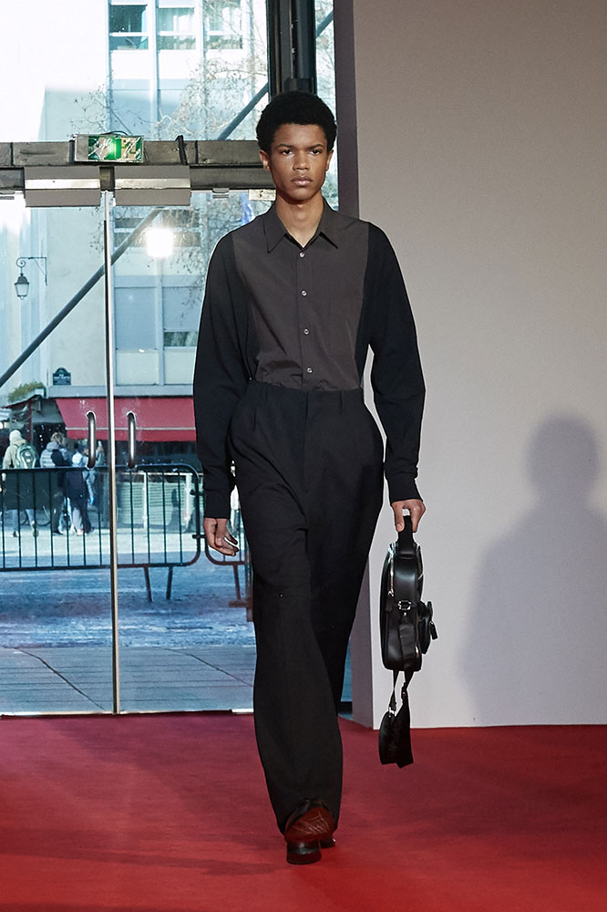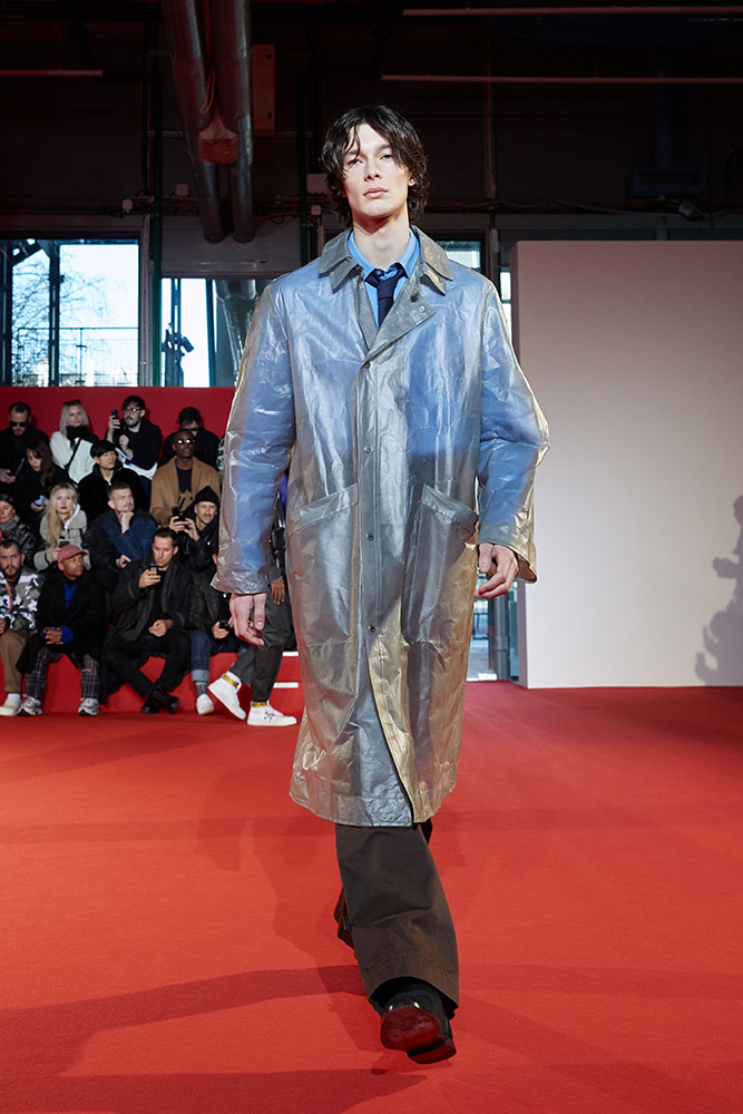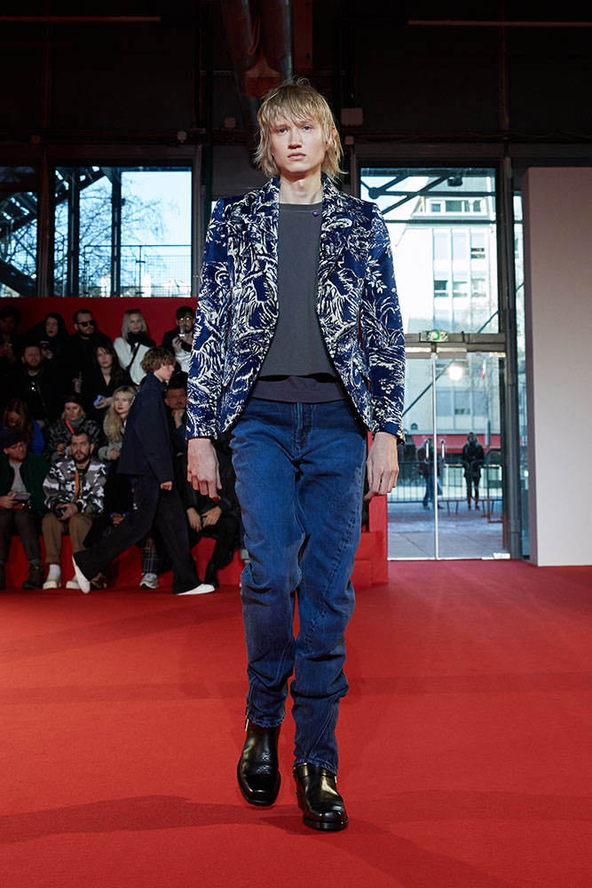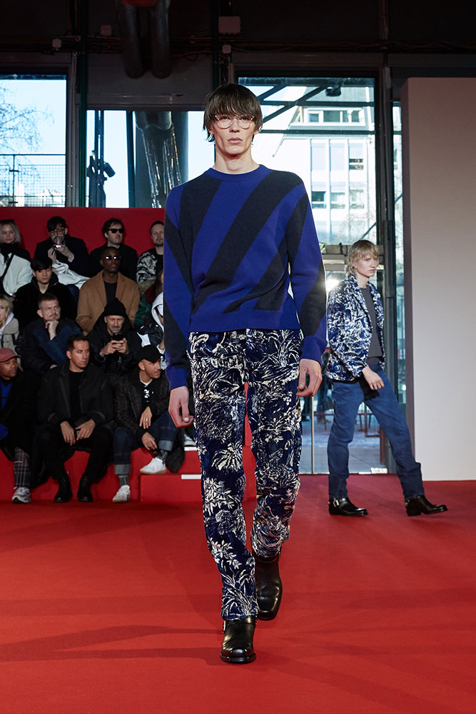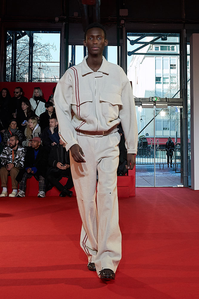 テーマを「BUSINESS CASUAL」と冠し、Virgil Abloh が魅せたのは OFF-WHITE 流ビジネススタイル。飛ぶ鳥を落とす勢いで躍進を続けるストリートウェアブランドでありながら、至極のテラーリングルックを披露。勿論、ショーでお目見えしたのは従来のスーツとは一線を画す、Virgil Abloh のひねりが存分に効いたユニークなルックの数々。建築家という顔も持つデザイナーらしく、構築的なデザインが随所に見てとることができる。