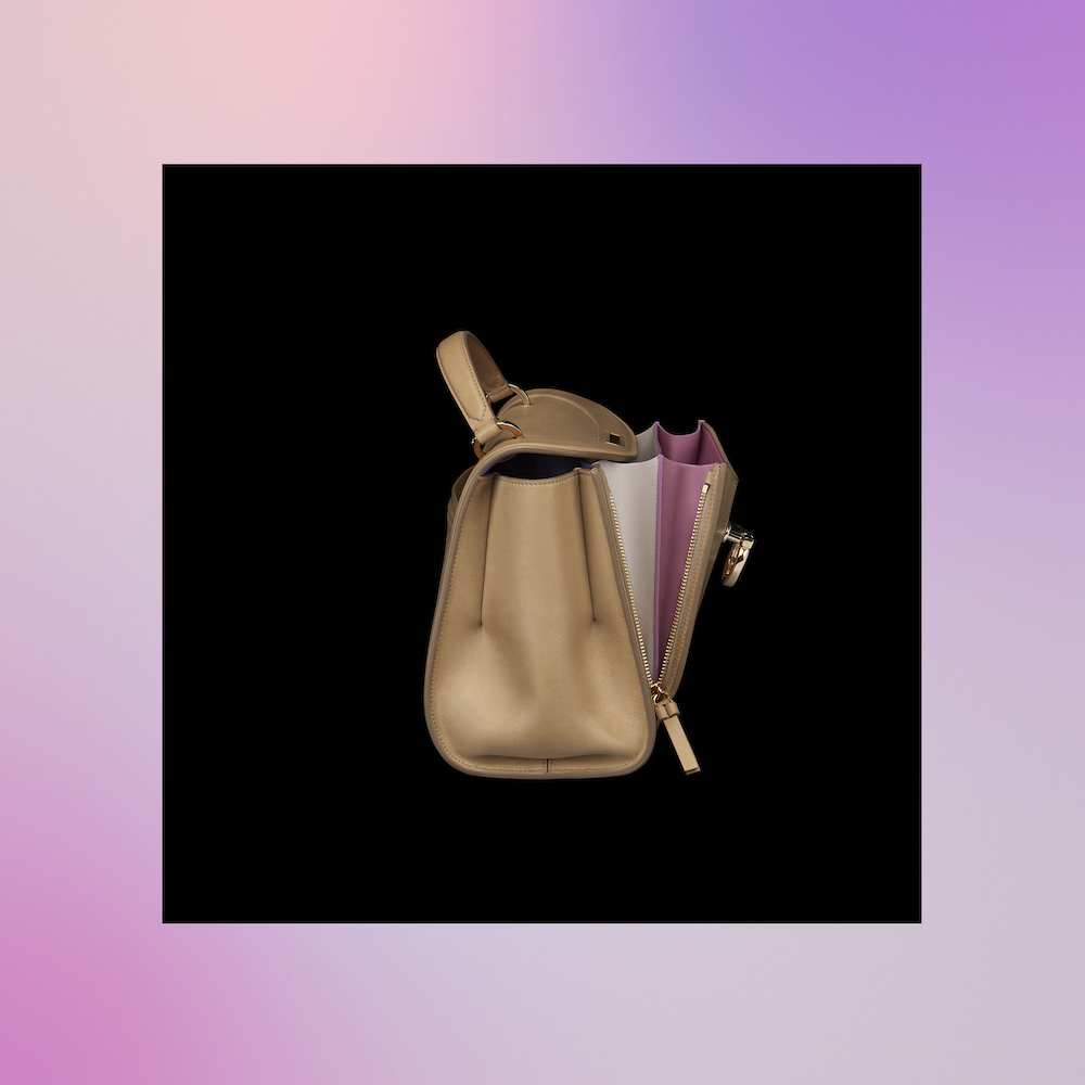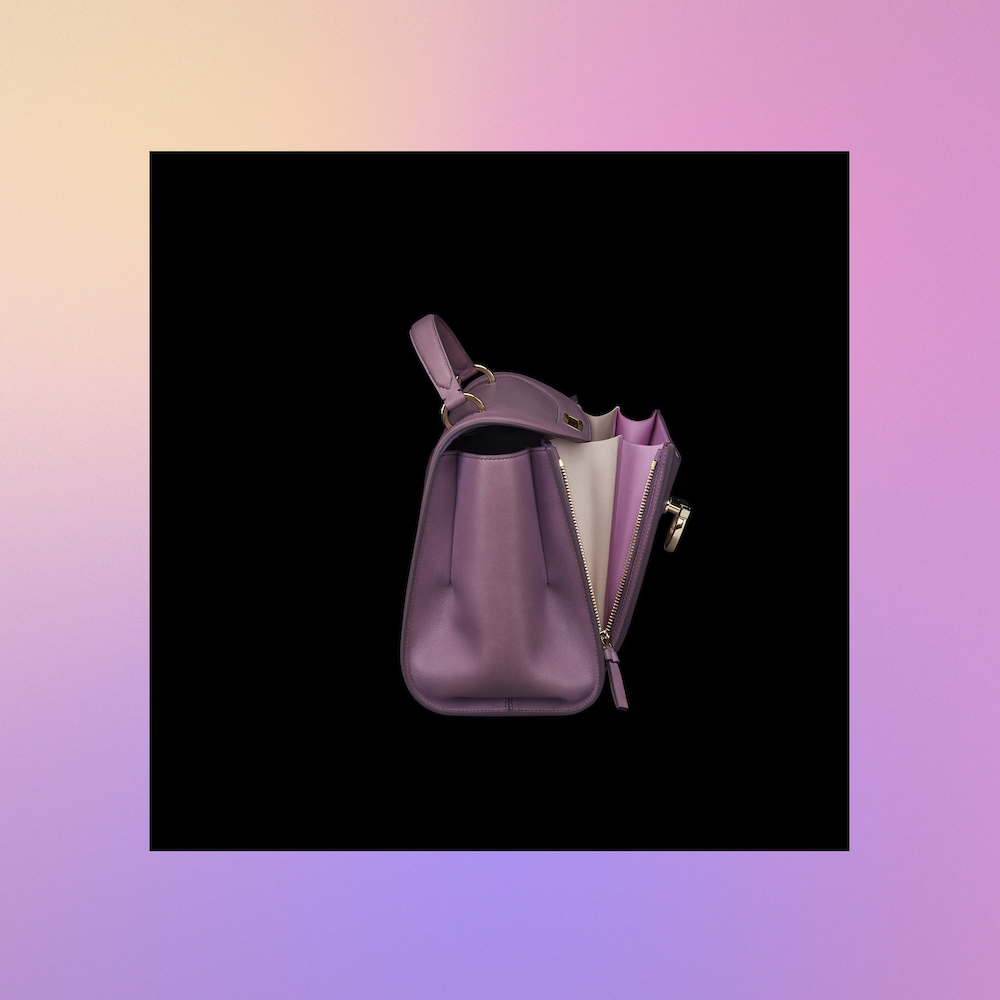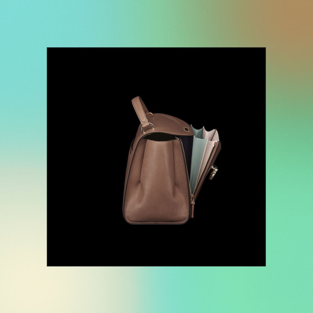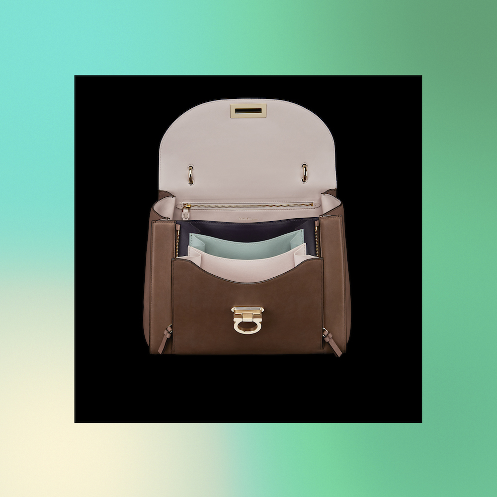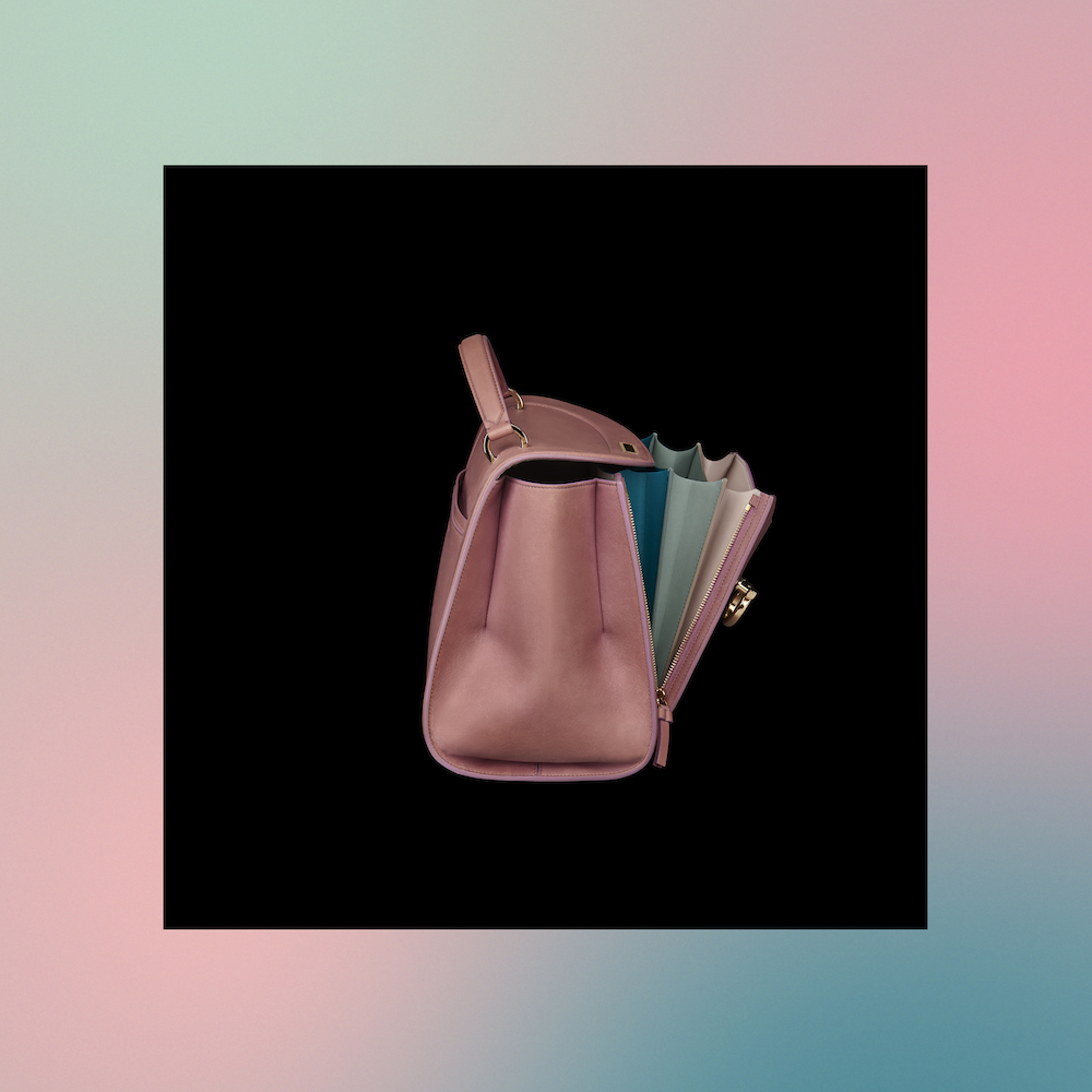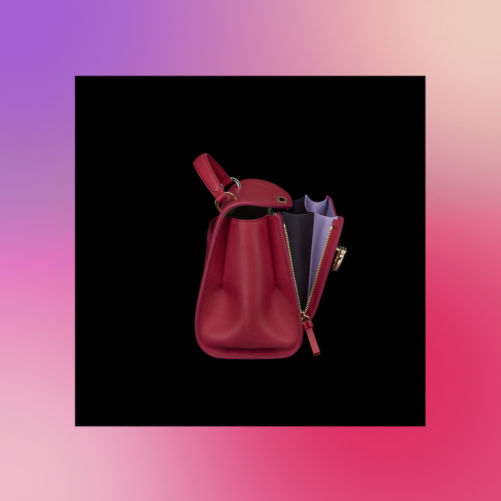 また、注目いただきたいのは、このバッグに隠されたとっておきのサプライズ。バッグの内側にある2つのサイドジップを開けると、マチ付きポケットのひとつずつのコンパートメントが違う異なる色でお目見え。実は、こちら1938年に Salvatore Ferragamo が Judy Garland (ジュディ・ガーランド) のために生み出したという伝説のレインボーサンダルへのオマージュ。Paul Andrew (ポール・アンドリュー) のブランドのヘリテージへの敬意とブランドの誇る精巧な技術と職人技が凝縮された贅沢な逸品だ。