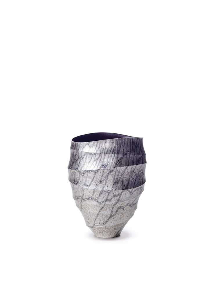 注目していただきたいのは、今回最多であった日本人アーティスト4名の作品。東京を拠点にわらを使うアーティストとして活動する ARKO は、稲わらを用いた織物の壁掛け『Third Time Rainfall』を制作。岐阜県を拠点に活躍する桑田卓郎は、典型的な釉薬が塗られた磁器のフォルムに質感のあるプラチナとスチールのダイナミックな表面を組み合わせた『Tea Bowl』を披露している。ロンドンのヴィクトリア・アンド・アルバート美術館に作品も所蔵されている佐故龍平は、木目金と呼ばれる刀装具の技法を用いた波模様の『Mokume-gane Vase』で、この日本の伝統的な合金を技術的限界まで追及。富山県を拠点とするガラス工芸のアーティスト横山翔平は、直径1メートルを越える吹きガラスの作品『静を孕む』を発表した。