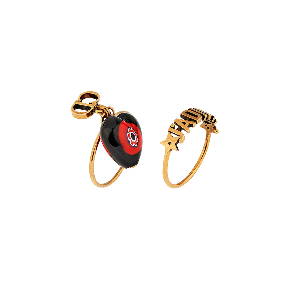 Niki de Saint Phalle (ニキ・ド・サンファル) のカラフルな作品から着想を得た Dior 2018年春夏コレクションのコスチューム ジュエリーは、色とりどりのベネチアングラスが可憐なゴールドのモチーフとともにお目見え。ネックレスやリング、イヤリングなどで用いられたガラスモチーフは、イタリア、ムラーノ島産のハンドメイド。1995年にムッシュ ディオールが発表したコスチュームジュエリーのファーストコレクションも制作された場所として知られるドイツのアトリエでは、ミツバチや数字の「8」、クローバーやスターモチーフが配されたパーツが制作されている。