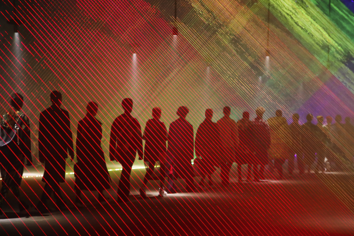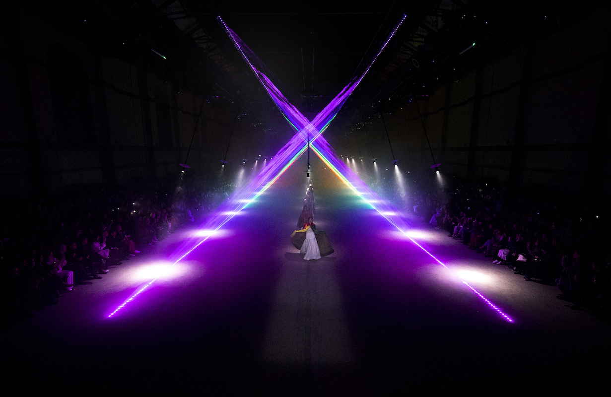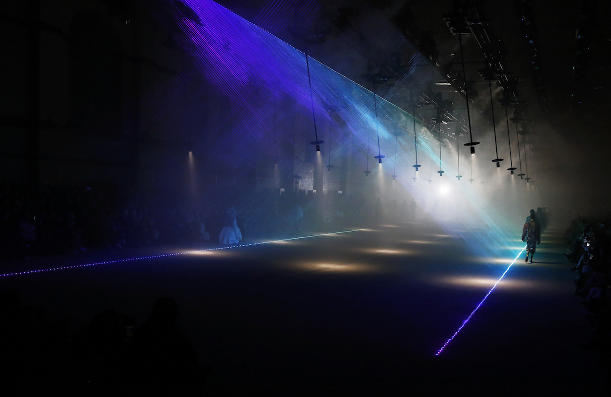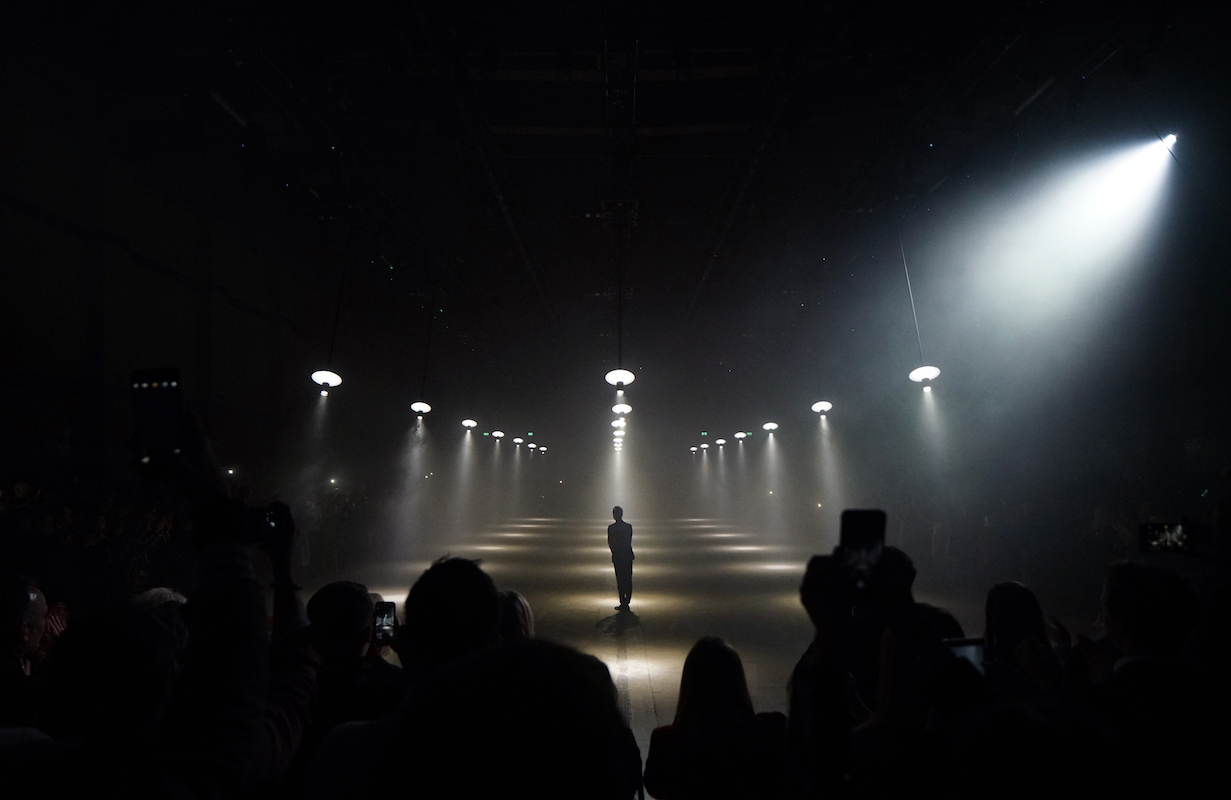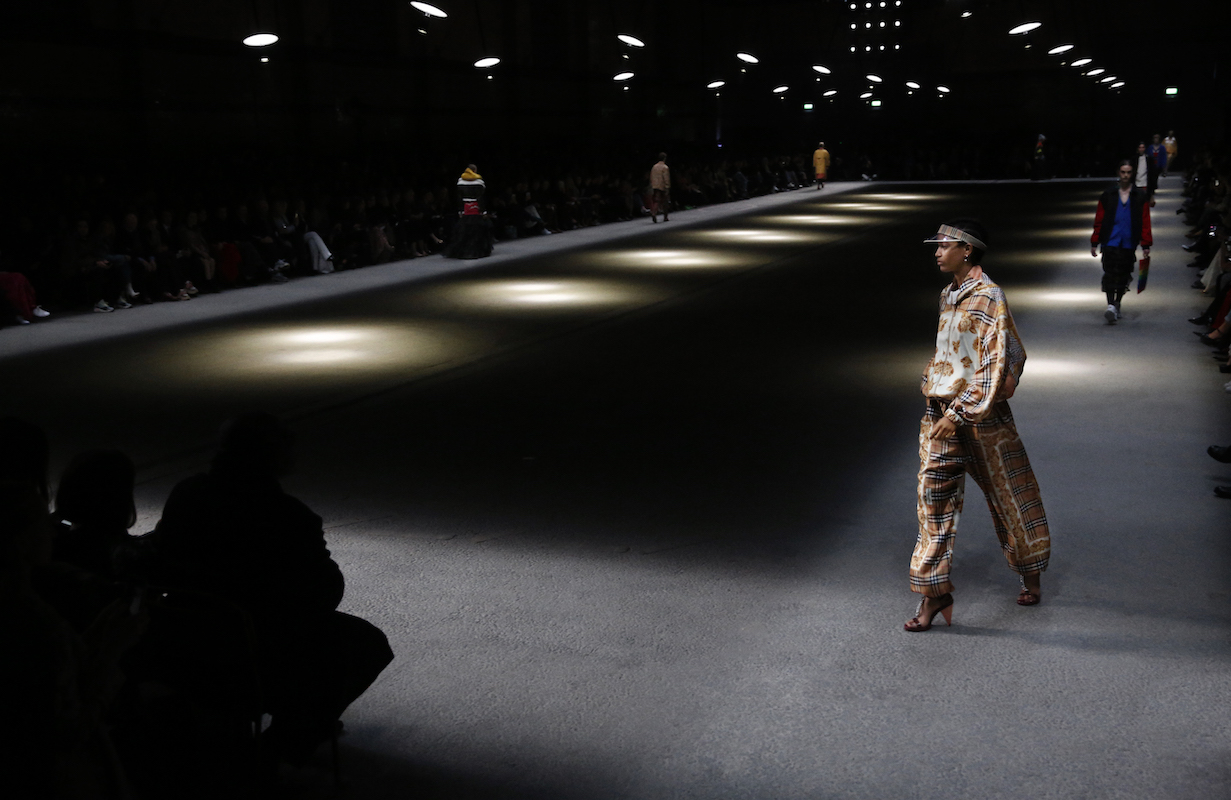 ロンドンコレクション、Burberry (バーバリー) は Christopher Bailey (クリストファー・ベイリー) がデザインする最後のランウェイコレクションとなった。選んだ会場はロンドンの中心から離れた鉄道の発電所跡だ。がらんとした暗いスペースに針金で吊るされた白い灯りのランプが何十本も揺れている。これは United Visual Artists (ユナイテッド・ビジュアル・アーティスツ) の「Our Time」をベースにした音と照明のインスタレーションだ。白い光の中、ドラマチックにショーがスタートした。