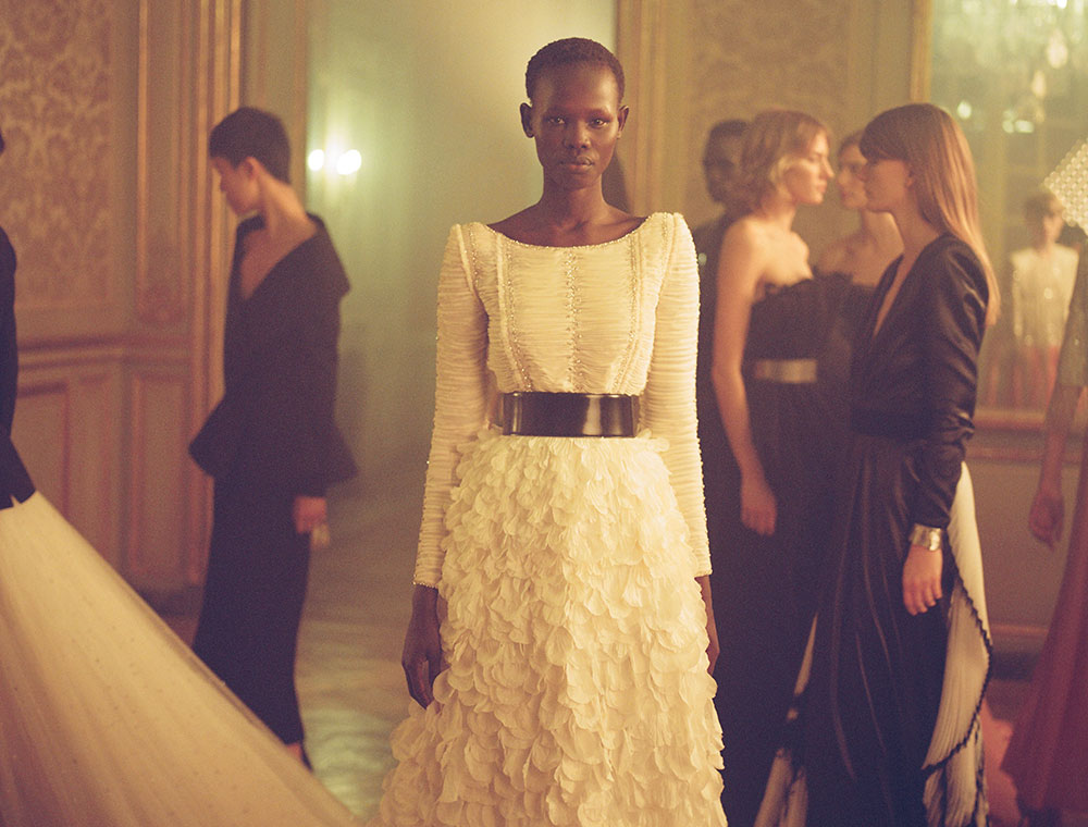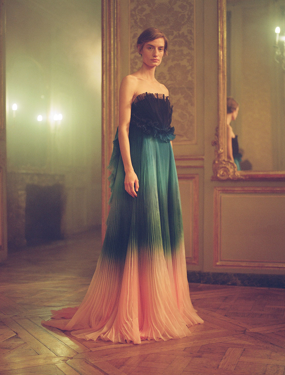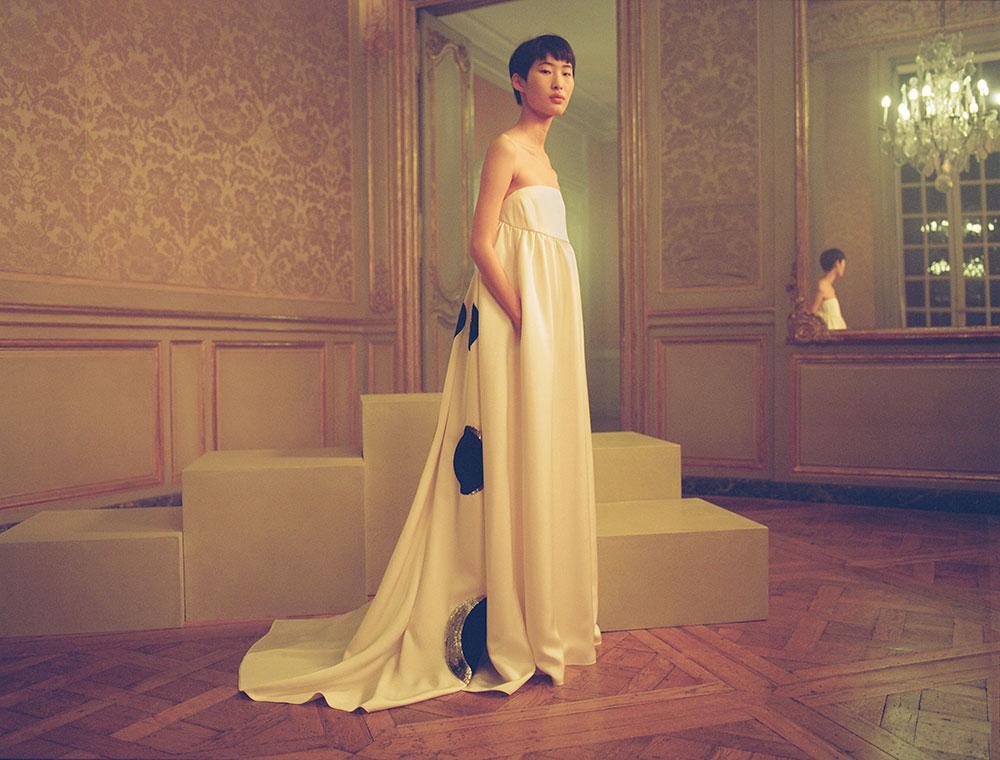 アーティスティック・ディレクター Clare Waight Keller (クレア・ワイト・ケラー) にとって初となったオートクチュールコレクション「Mystères d’un jardin de nuit(夜の庭園の神秘)」は、その名の通りミステリアスな魅力に満ちたコレクション。バルセロナを拠点とするフォトグラファーであり、Solange (ソランジェ) や Ibeyi (イベイー) のミュージックビデオを手掛けたことでも知られる Carlota Guerrero が得意とする女性の身体に焦点を当てた幻想的な映像は、完璧に同コレクションに呼応している。