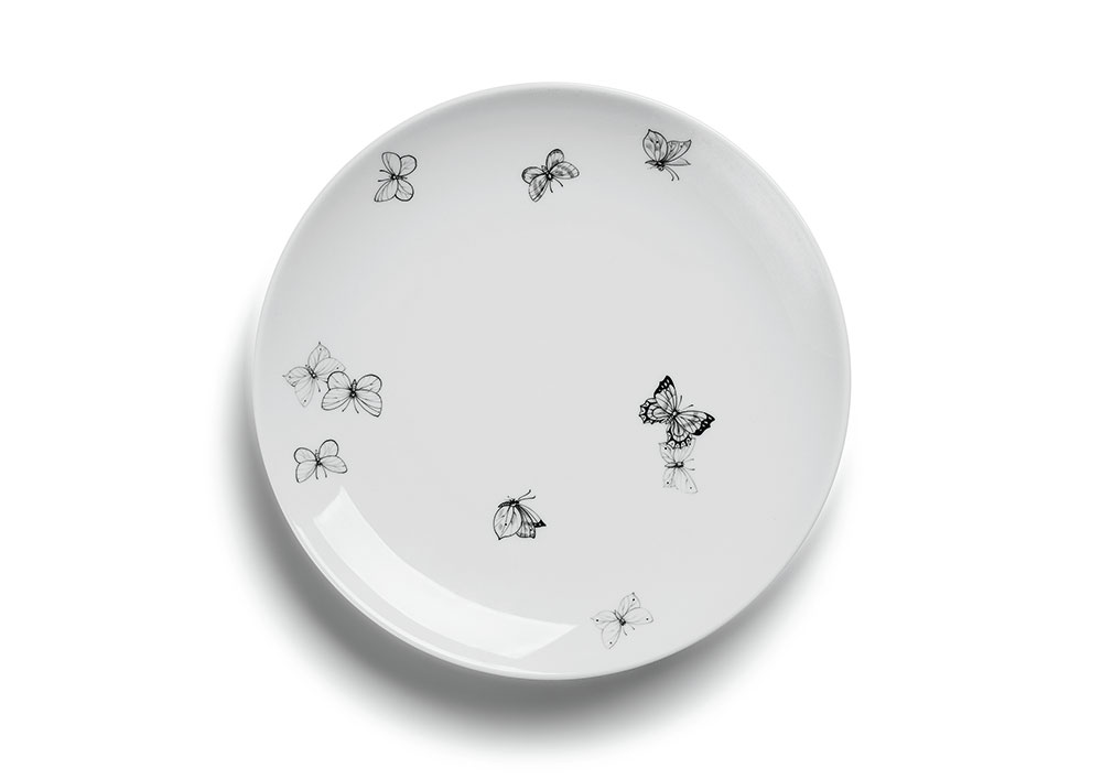 本コレクションで Tomas Maier はイタリア人デザイナー Osanna Visconti di Modrone (オサナ・ヴィスコンティ・ディ・モドローネ) と再びコラボ。新作の照明は、円柱のシェードを用いたシャンデリア、テーブルランプ、ペンダントランプの3型で登場。通常は彫刻に使用されるというロストワックス法という技法を用いることで、ブロンズの上に素晴らしい手触りのイントレチャートを実現させている。他にも、ルディ・ソファの新作である「ルディ・フリンジ」や大理石の天板を用いた建築的なメタル製の「エイト・アーチ」テーブル、細な手描きによるバタフライのモチーフが施されたポーセリンコレクションなどもお目見え。Tomas Maier の意匠が凝らされた究極のコレクションから Bottega Veneta が大切にするイタリア流アート・オブ・リビングを感じ取っていただきたい。