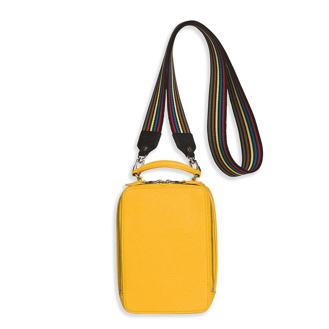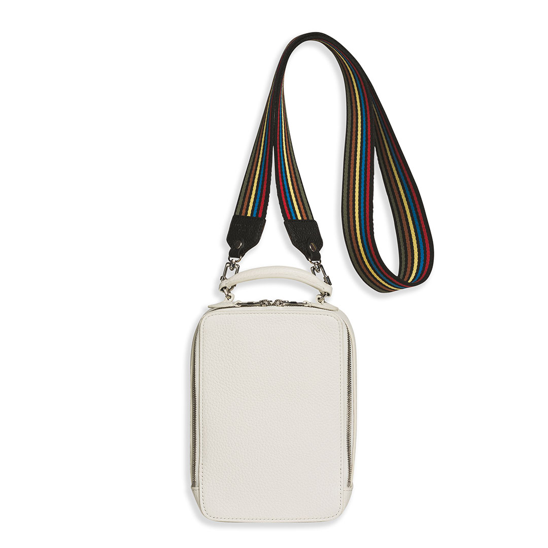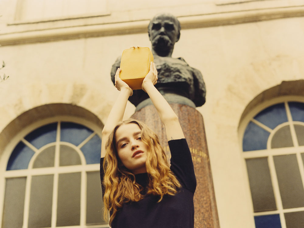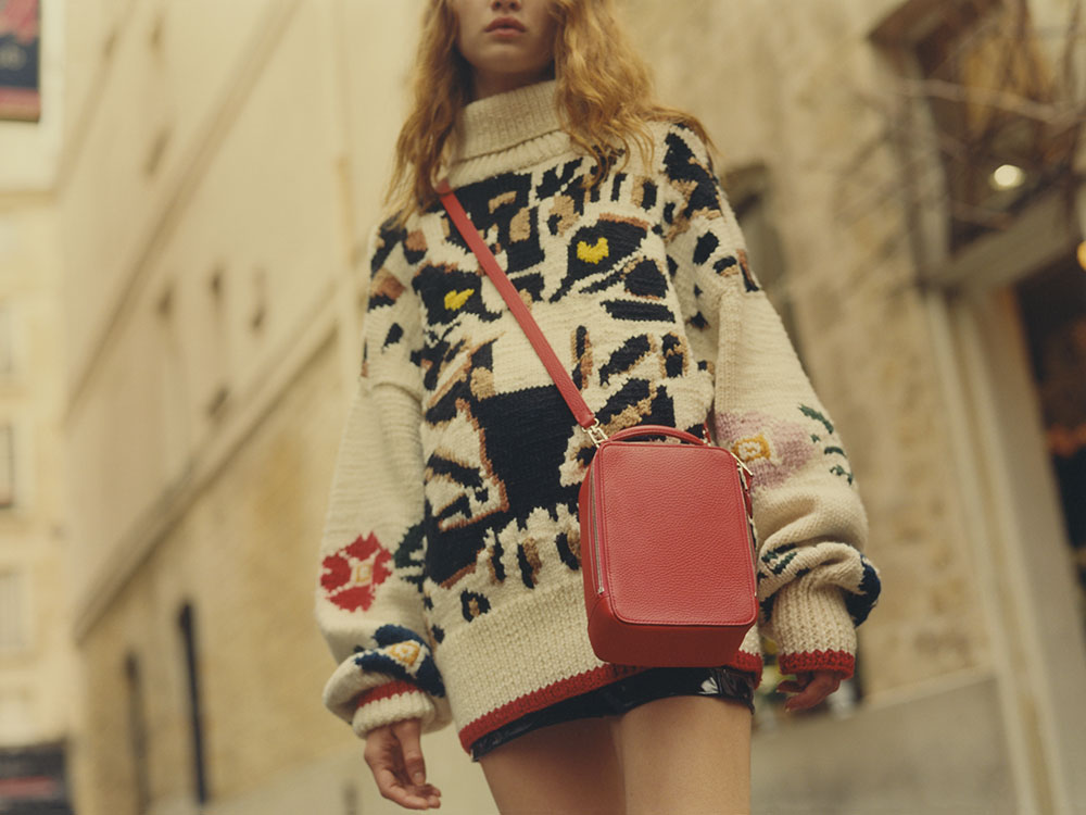 この「パヴェ」が主役となった年と同じ1968年5月に誕生した SONIA RYKIEL では、50周年というアニバーサリーを記念して発売された限定バッグに「パヴェ パリジャン」という名前が付けられた。今回この「パヴェ」が象徴するのは、激しい反抗ではなく、スタイルの宣言。敷石を連想させるキュービックシェイプで、ナチュラルなエッジが効いたデザインはまさにモダン。フェミニンなヴァニティケースをベースにアーティスティック・ディレクター Julie De Libran (ジュエリー・ドゥ・リブラン) かによってデザインされた8色展開の限定バッグは、小さな見かけによらず多機能なディティールもポイントだ。このコンパクトで小さなバッグの中には、ミラー、隠しポケット、キーホールダーが備え付けられ、内側にはバッグの名前を記したタグが、控えめながらも誇らかにあしらわれている。もちろん上部のハンドルを持ってヴァニティーケースとしても良し、付属のストラップ(同色のレザーストラップとマルチカラーのストラップ二本がセットになっている)を装着してショルダーとしても使うことも可能に。