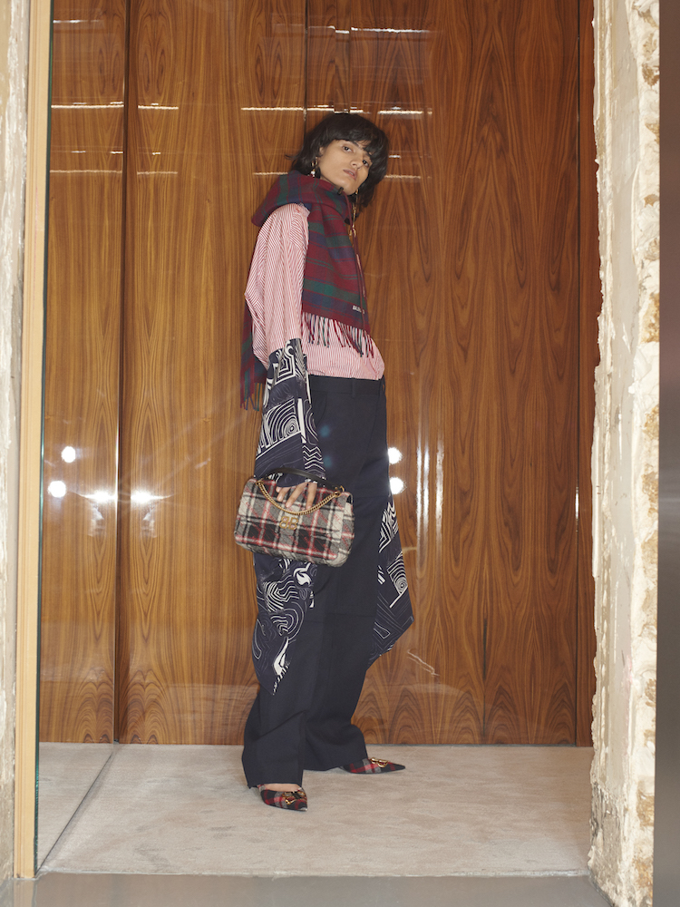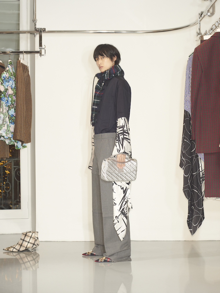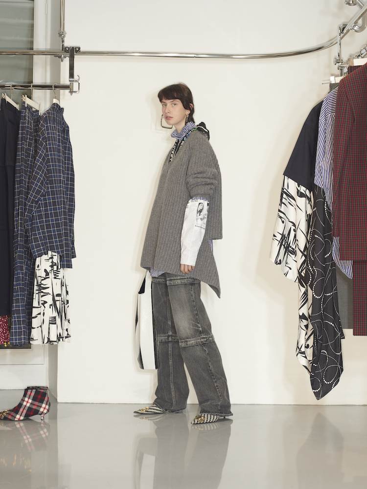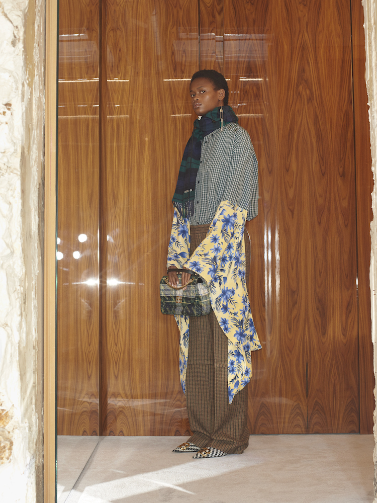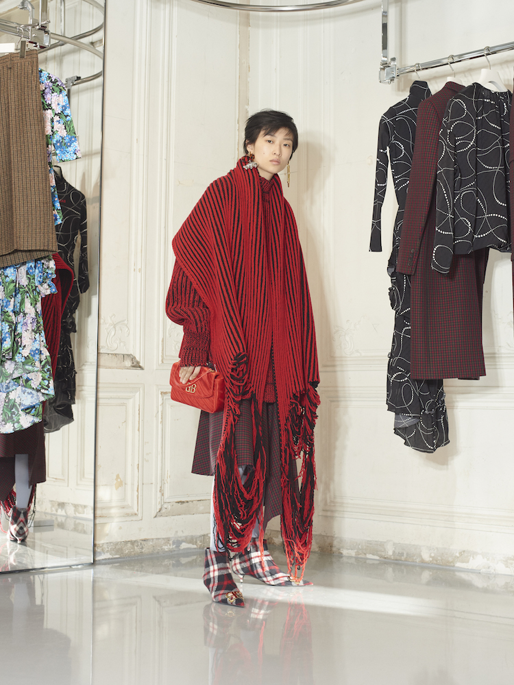 18年春夏ランウェイショーに引き続き Balenciaga が提案するのは、他とは一線を画するユニークなレイヤードスタイル。タータンブランケットとキルトジャケットが一枚になったアイテムや、モーターサイクルウェアのモチーフを取り入れたチェックのツイードコートなど一癖も二癖もあるアイテムが多数登場。誇張されたボリュームや収縮したシルエットなどが独特のバランス感を体現している。他にも、アウトドアのハイキング装備から取り入れられた3重の水平なジッパーや着物から着想を得た流れるような袖のデザインなどが新たにお目見え。Balenciaga のロゴバッグやゴールドの BB ロゴが冠されたローヒールのスティレットブーツ、クッキーの型抜きやスーパーヒーローのフィギュアからインスパイアされたイヤリングなど話題をさらうこと間違いなしの存在感抜群なアクセサリーも目白押しだ。全ルックを今すぐチェックして、これからのシーズンに向けたウィッシュリストの参考にしてみてはいかがだろうか。