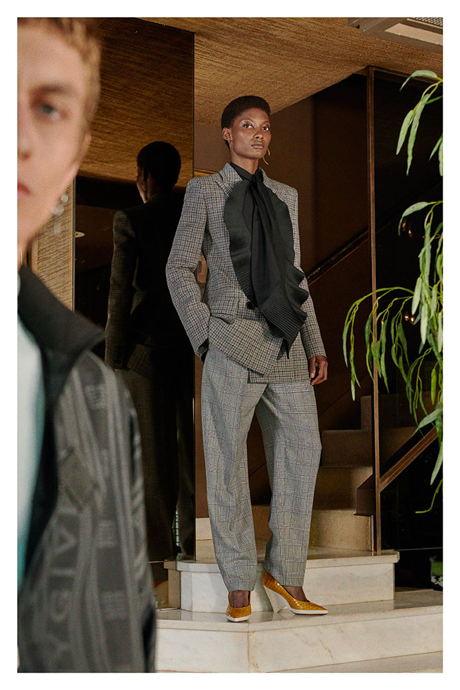 伝統的なメンズのテーラリングに80年代のシャープなショルダーやアシンメトリーなシルエットなども組み合わせられ、Clare Waight Keller の英国で培ったデザインと Givenchy の世界観が見事に融合したコレクションに仕上がっている。日本の専門ウールやダブルフェイスのカシミア、超軽量のナイロン、新たに開発された光沢仕上げのジャージーやレザー、カラーバリエーションも豊かにお目見えしたイミテーションのナチュラル・フォックスなど、ファブリックへの並ならぬこだわりも伺うことができる。様々な要素が幾重にも折り重なることで、見所満載となった2019年スプリングコレクション、是非ヴィジュアルからお気に入りのルックを見つけてみてほしい。