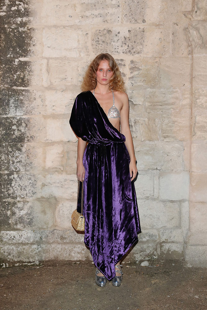 会場には、Petra Collins (ペトラ・コリンズ) や Gia Coppola (ジア・コッポラ)、A$AP Rocky (エイサップ・ロッキー)、Soko (ソーコ)、Lou Doillon (ルー・ドワイヨン)、Hari Nef (ハリ・ネフ) ら豪華ゲストが勢ぞろい。ショーの後に開催されたガーデンパーティでは Elton John (エルトン・ジョン) によるパフォーマンスが披露されるなど、飛ぶ鳥落とす勢いの Gucci らしいエネルギーに溢れた一夜になった。
