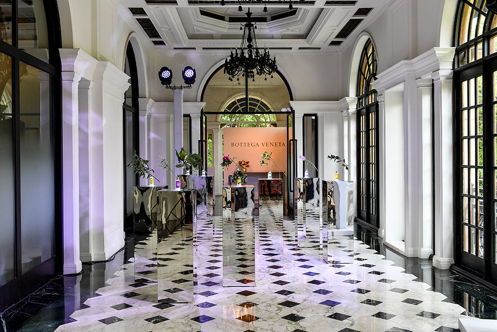 今回開催されたイベントでは、フレグランスコレクション「パルコ パラディアーノ」の新作やブランドのモットーである「When your own initials are enough (自分のイニシャルだけで十分)」を体現したパーソナライゼーション・サービスを展示。庭園の中庭中央には、ニューヨークで発表されたコレクションと同様、ミラールームが登場するなど、Bottega Veneta の世界を存分に体感できる空間に仕上げられていた。夜にはヴィラの中庭にてカクテルパーティーが開かれ、ベネチア産のプロセッコが振る舞われた他、DJによるパフォーマンスが披露されるなど、アジア各地から招待されたゲストたちを存分に楽しませた。日本からは、佐藤晴美と松井愛莉が出席した。