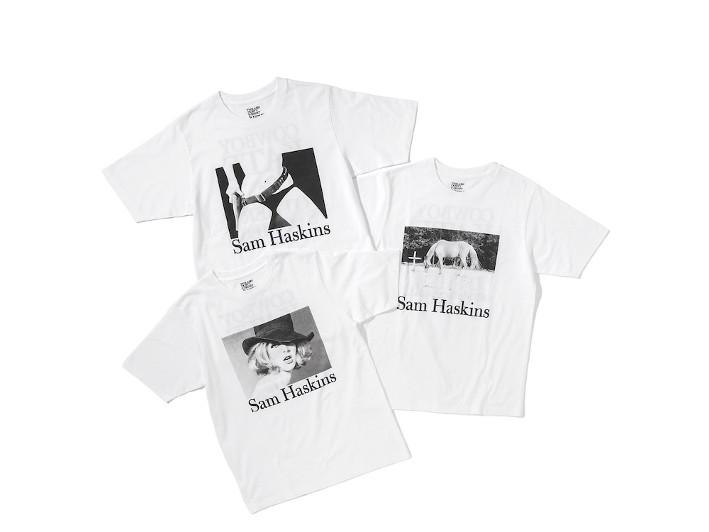 Sam Haskins は、ハットを被った Kate Moss (ケイト・モス) の大胆なモノクロのポートレートなどで知られる南アフリカ出身のフォトグラファー。60年間にわたるキャリアにおいて数々の著名ファッション誌での仕事をはじめ、高い評価を集める写真集を多数を発表し、2009年に他界した後もなお多くのファッションフォトグラファーに影響を与えている。今回のコレクションでは、前出のポートレート写真も収録された Sam Haskins の最高傑作「COWBOY KATE & OTHER STORIES」からスタイリストの野口強がイメージをセレクト。野口強と写真家のコラボレートTシャツを展開してきた「Stie-lo」オリジナルとして発売される。
