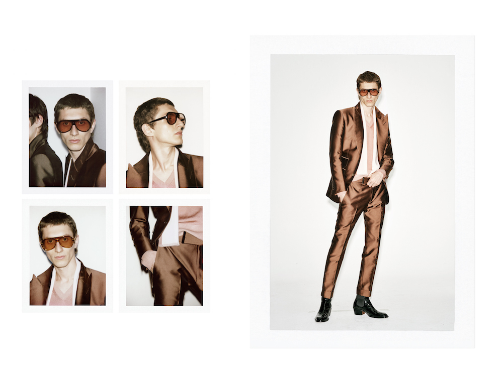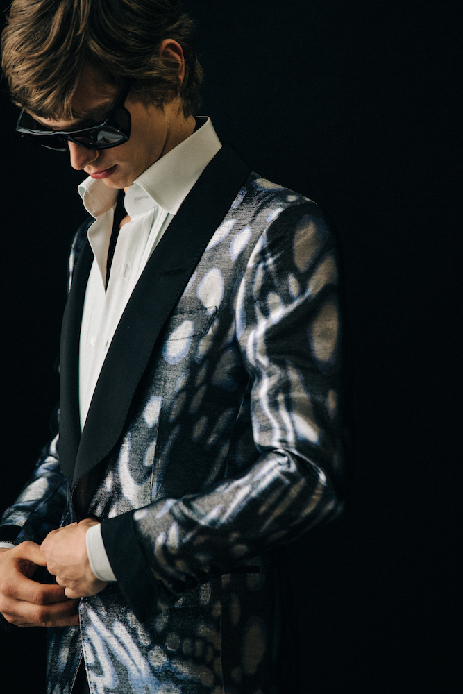 本コレクションでは、いつも以上に TOM FORD (トム・フォード) らしさが存分に発揮されている。Tom Ford といえば近年では、『シングルマン』に次いで『ノクターナル・アニマルズ』など映画監督としても意欲的に活動しており、高い評価を得ている。映画と同じようにファッションという文脈でもまた、自身のオーセンティシティを活かした粋な男性像を体現。洗練されたオーソドックスなスタイルは健在ながらも、コレクションの節々にストリートウェアや70年代の要素を取り入れることでより現代的な男性を表現している。特にユニークなアイウェアや幅の広いラペルなどに強いこだわりを感じることができる。ルックブックだけでなく、撮影時のビハインド ザ シーンも合わせてチェックしていただきたい。