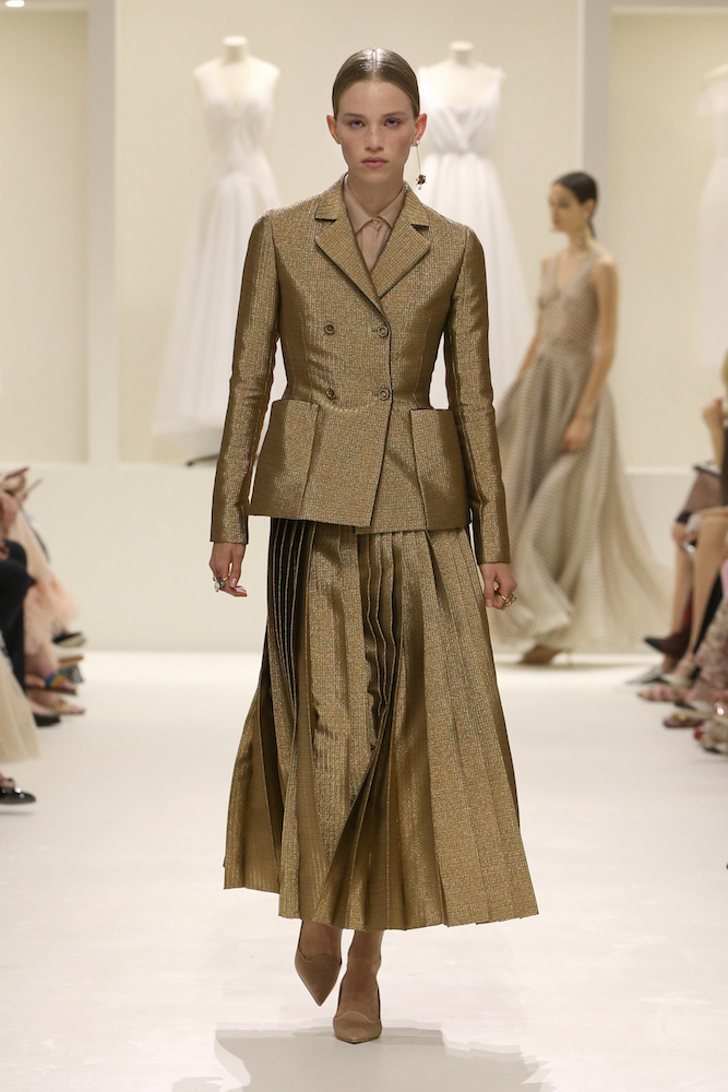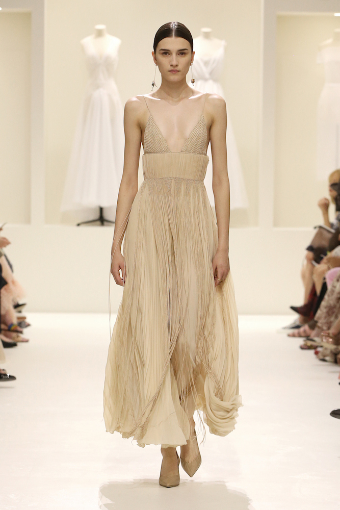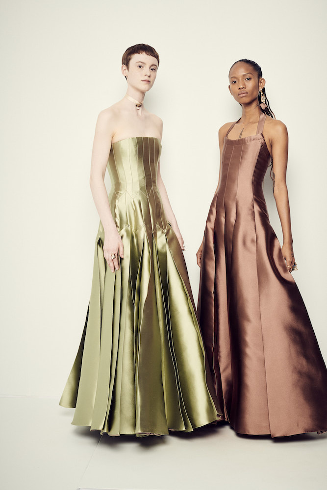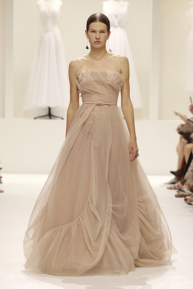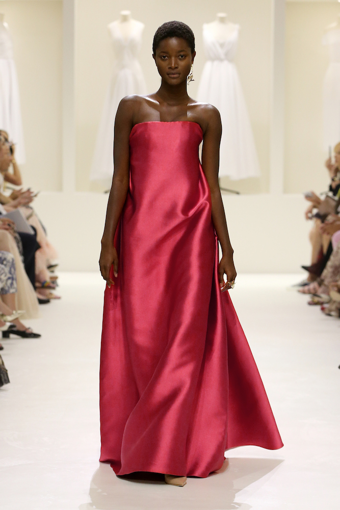 Maria Grazia Chiuri (マリア・グラツィア・キウリ) は今回、メゾンのアトリエのサヴォワールフェールに焦点を当て、クチュリエたちを賛美したコレクションを発表。ショーが開催された会場もまた、昨年メゾンの70周年を記念して開催された『クリスチャン・ディオール 夢のクチュリエ』展を想起させる純白のトワルが並んだ特別な空間に仕上げられた。