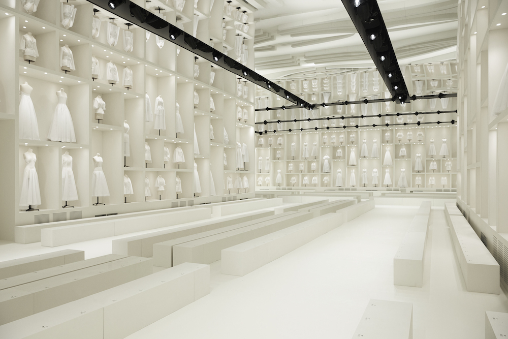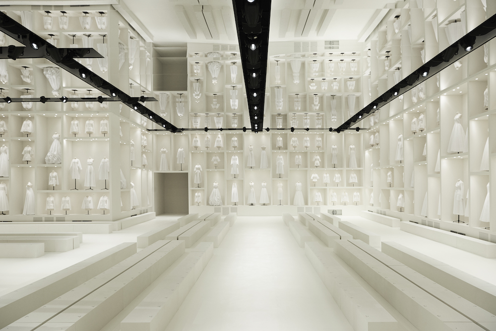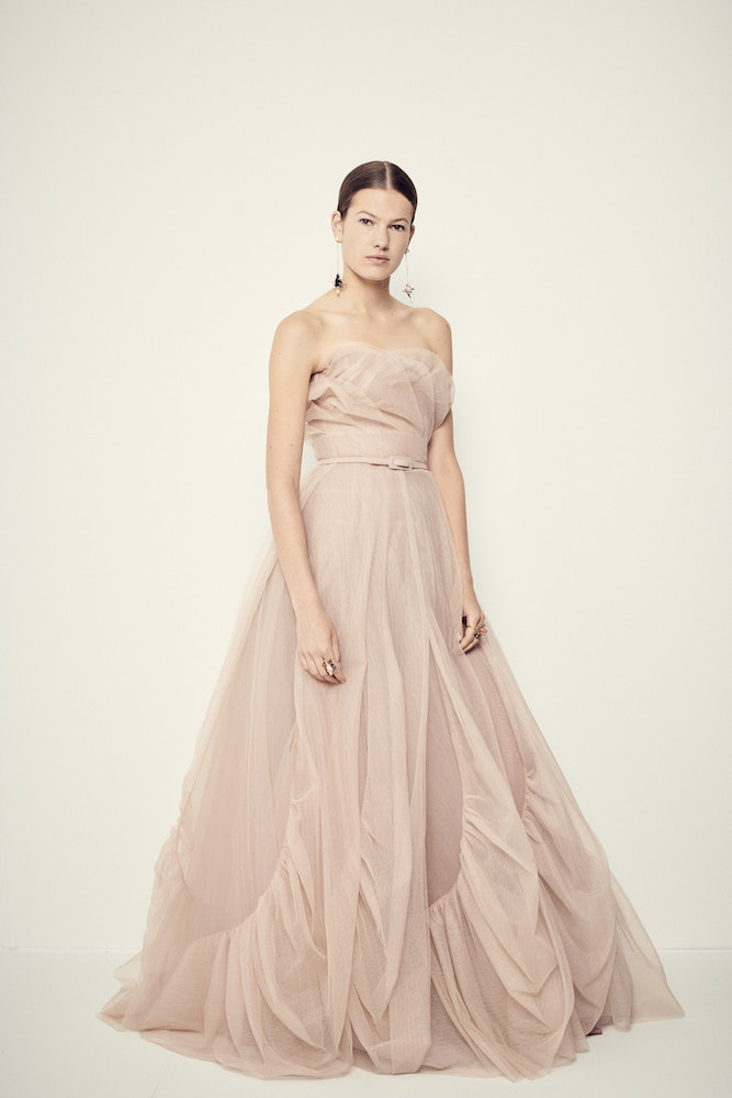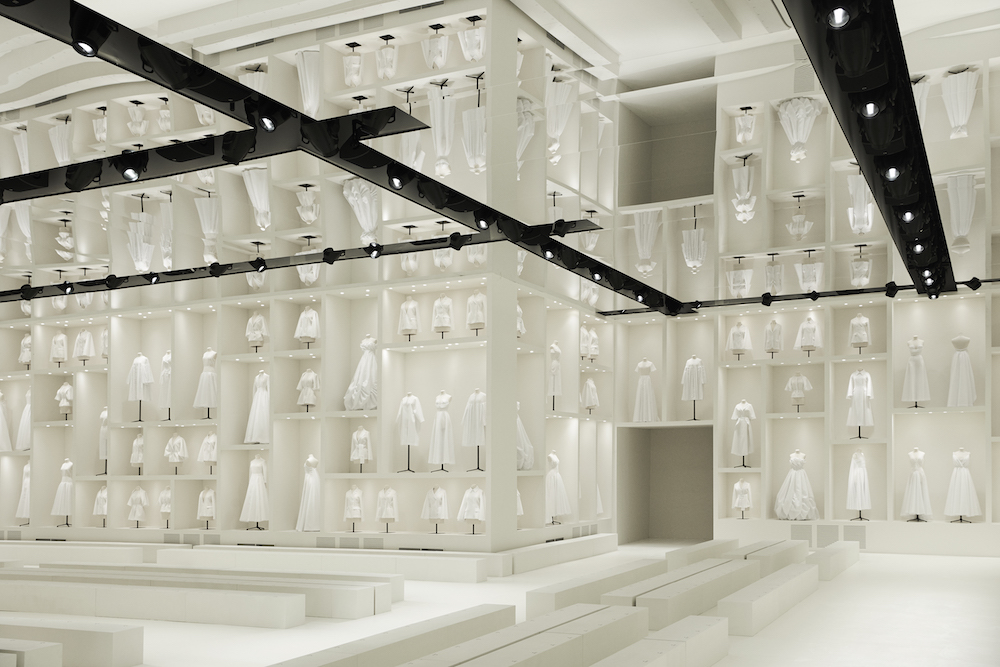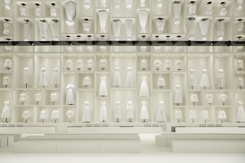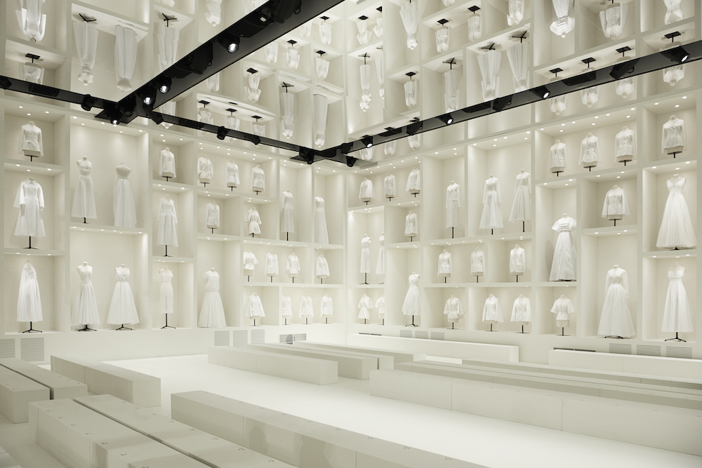 Maria Grazia Chiuri (マリア・グラツィア・キウリ) は今回、メゾンのアトリエのサヴォワールフェールに焦点を当て、クチュリエたちを賛美したコレクションを発表。ショーが開催された会場もまた、昨年メゾンの70周年を記念して開催された『クリスチャン・ディオール 夢のクチュリエ』展を想起させる純白のトワルが並んだ特別な空間に仕上げられた。