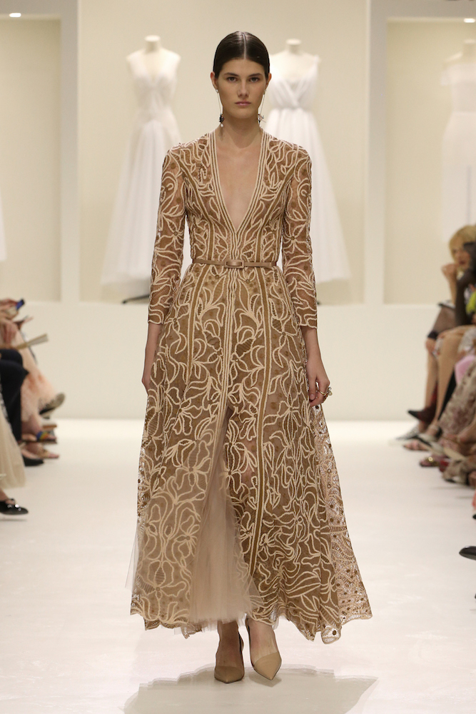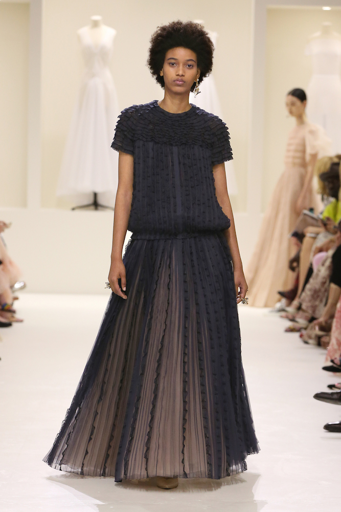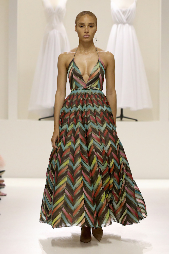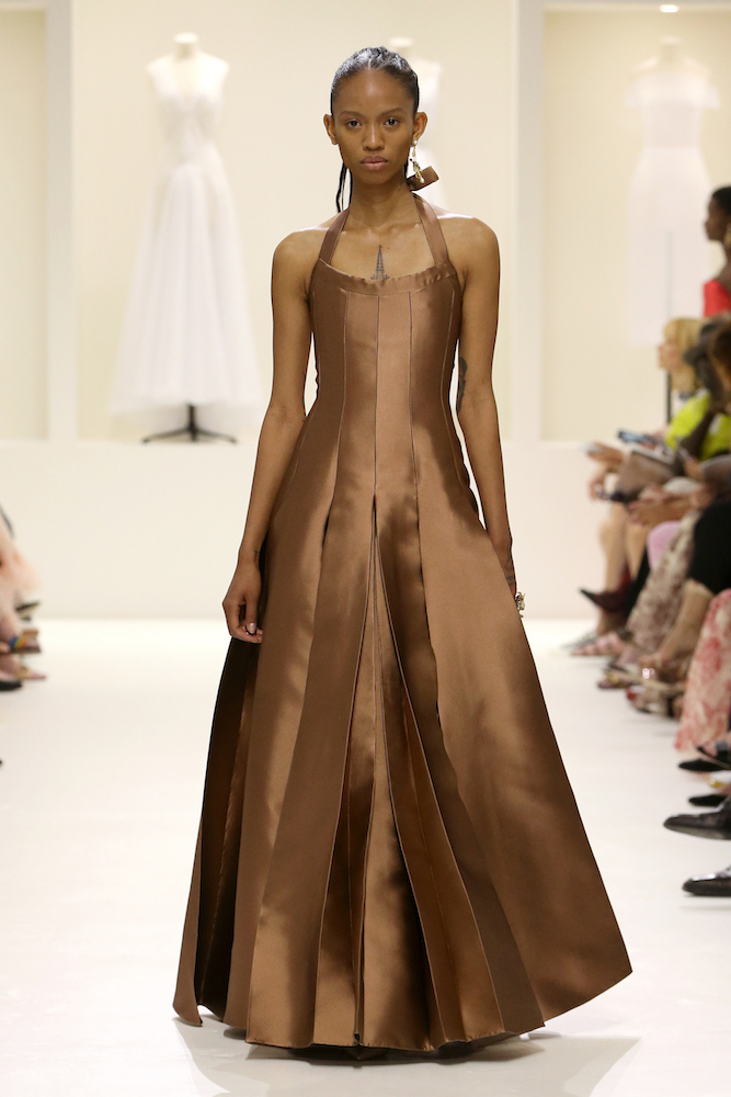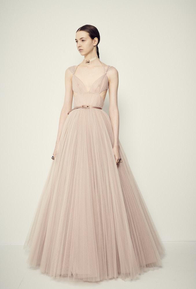 本コレクションで Maria Grazia Chiuri は「オートクチュールに批判的な解釈を施すのと同時に、これを讃えることは可能だろうか?新たな秩序を作り上げるために、オートクチュール雇用者組合が規定する厳格な規範を壊すと同時に、これに忠実でいられるだろうか?」という一見すると矛盾しているような疑問を投げかけている。格式高く、崇高な歴史を持つ伝統的なオートクチュールというのは芸術であって、真のアバンギャルドであると彼女は宣言しているのだ。
