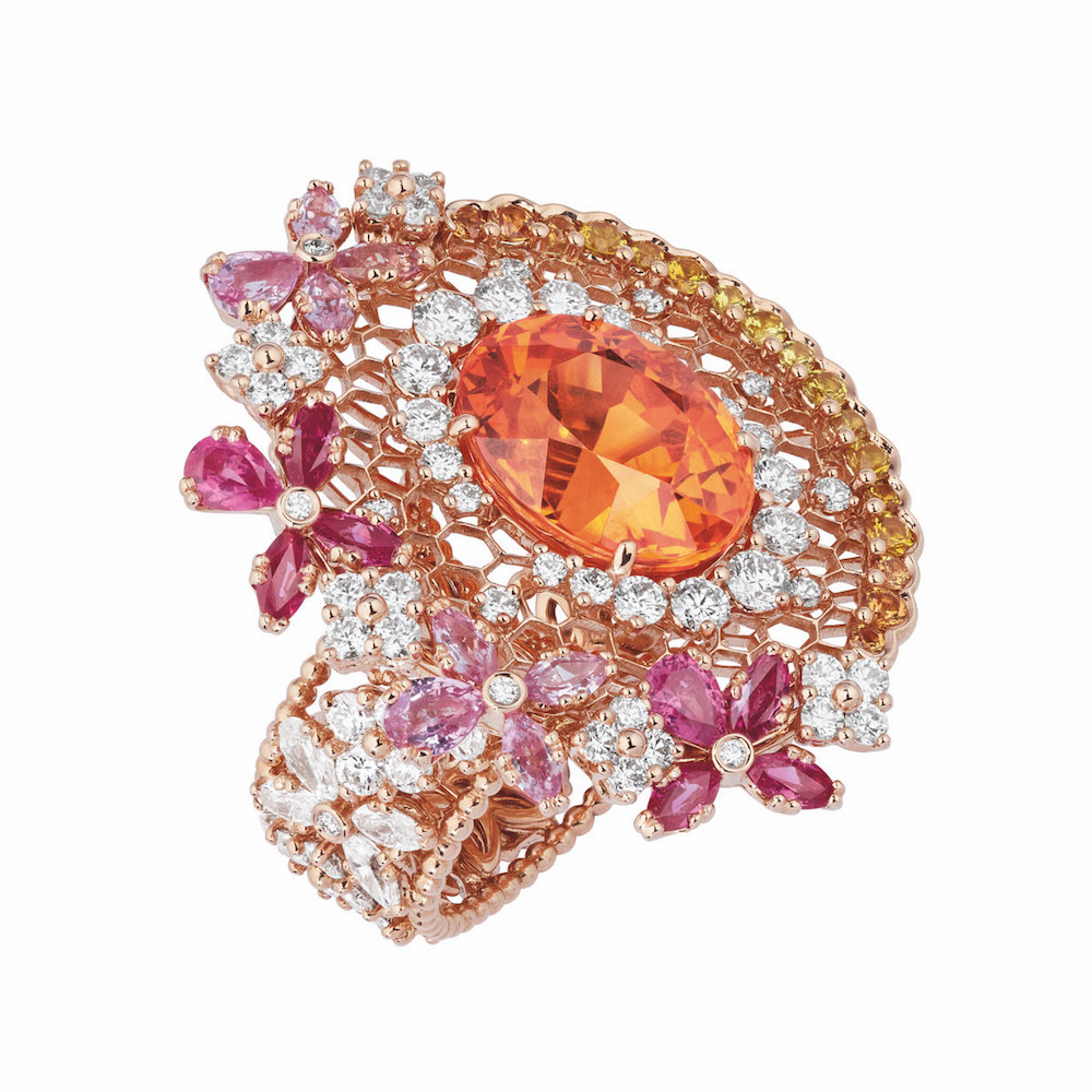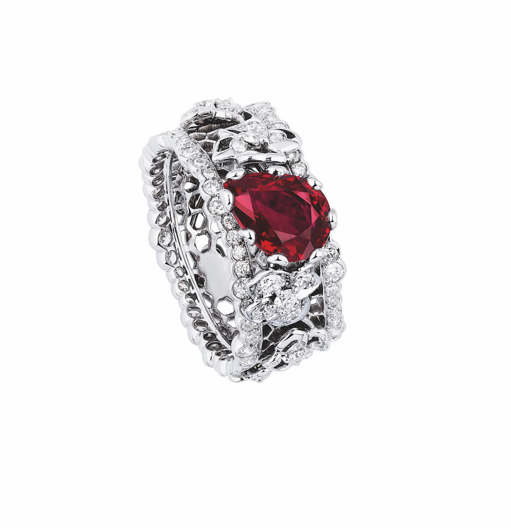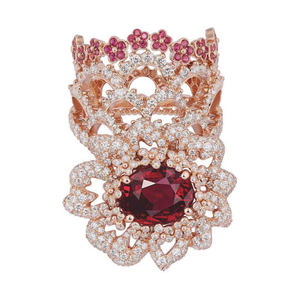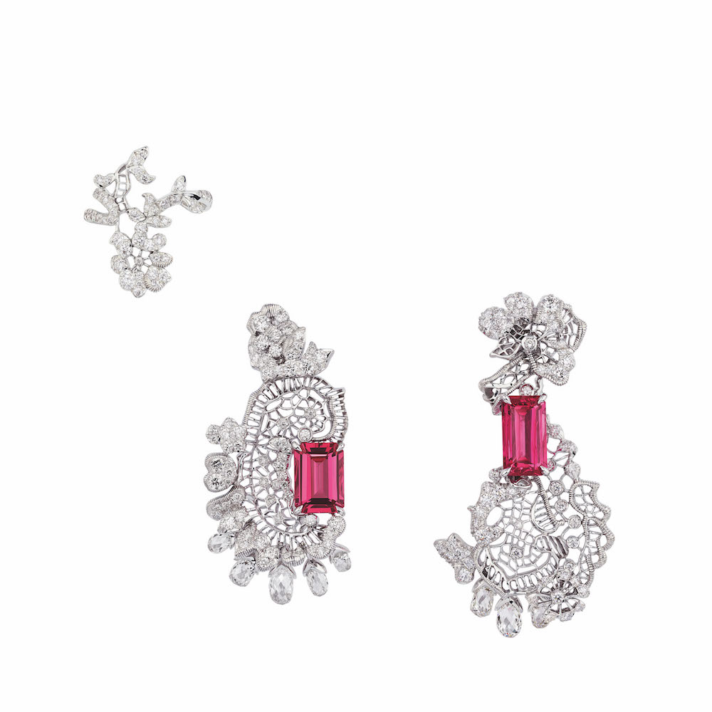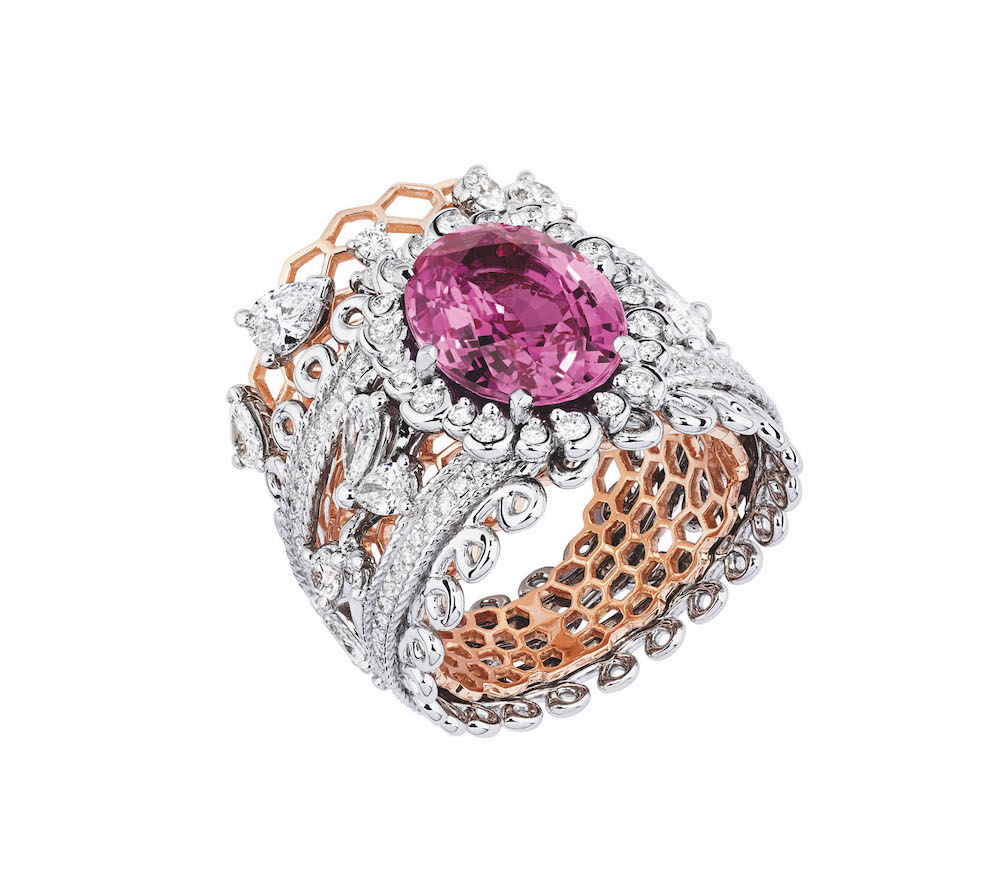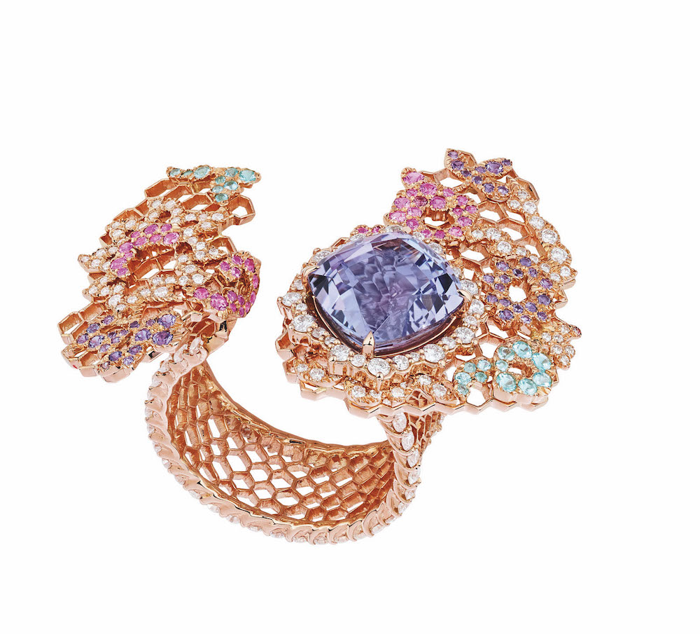 本コレクションは、オートクチュールの卓越したノウハウからインスピレーションを得た芸術作品かと見まごうようなハイジュエリーのコレクション。「レースの切れ端をカットして手のひらの上に置き、カラフルなジュエリーへの変化させる」というアイディアから生まれた同コレクションは、メゾンのヘリテージと Christian Dior (クリスチャン ディオール) のアーカイブの種類豊富なレースを渦巻状や螺旋状を入れ混じりながら、ネックレスやリング、ブレスレット、イヤリングで表現している。ジュエリーのアーティスティック ディレクターである Victoire de Castellane (ヴィクトワール・ドゥ・カステラーヌ) は、「私が表現したかったのは、その空気のような軽さとオートクチュールの象徴としてのレースです。それは、リボンやシルク、ドレープのようにディオールの辞書にはなくてはならない存在です」とコメントしている。Dior が誇る最高峰の匠の技術の集大成である「Dior Dior Dior」、その美しさをまずはギャラリーからとくと堪能していただきたい。