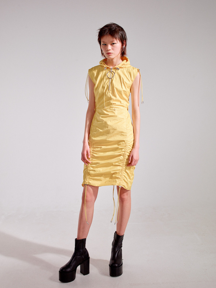 これまでもカウンターカルチャーから強く影響を受けてきたデザイナーの柳川荒士は、本コレクションで1970年代後期のスイスのパンクシーンを一冊にまとめた Lurker Grand (ルーカー・グランド) の代表作『Hot Love: Swiss Punk & Wave』のアーカイヴや Depeche Mode (ディペッッシュ・モード) のフロントマンであり、カルトアイコンでもある Dave Gahan (デイヴ・ガーン) からインスピレーションを得たという。ウィメンズコレクションもシルエットやディテール、素材使いでインパクト抜群のエッジが効いたスタイリングを見せつつ、現代的な解釈を加えることで洗練されたムードも実現させている。是非、パリで6月に開催されたランウェイショーとあわせてチェックしてみて欲しい。