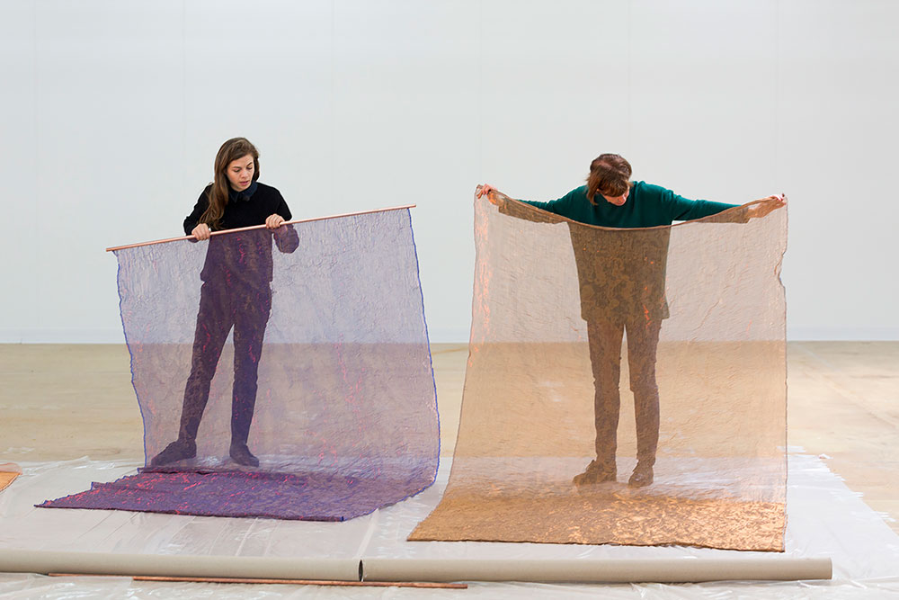 世代を超えて伝承される技をもつ職人と創造性豊かな現代アーティストが出会い、共有と協働を行うことを目的に、2010年以来エルメス財団によって定期的に開催されている本プログラム。今回は、2014年から2017年の間に3人のメンターによって選出された9名の作家たちが参加した。彼らは主にフランスに拠点を持つ Hermès (エルメス) の様々な工房に滞在し、その卓越した職人技に触れるとともに、シルク、皮革、銀、クリスタルといった Hermès の誇る最高峰の素材を使用し作品を制作。本展では、卓越した技術をもつ職人とともに試行錯誤を重ね、生み出されたアート作品の数々を二期にわたって展示してゆく。