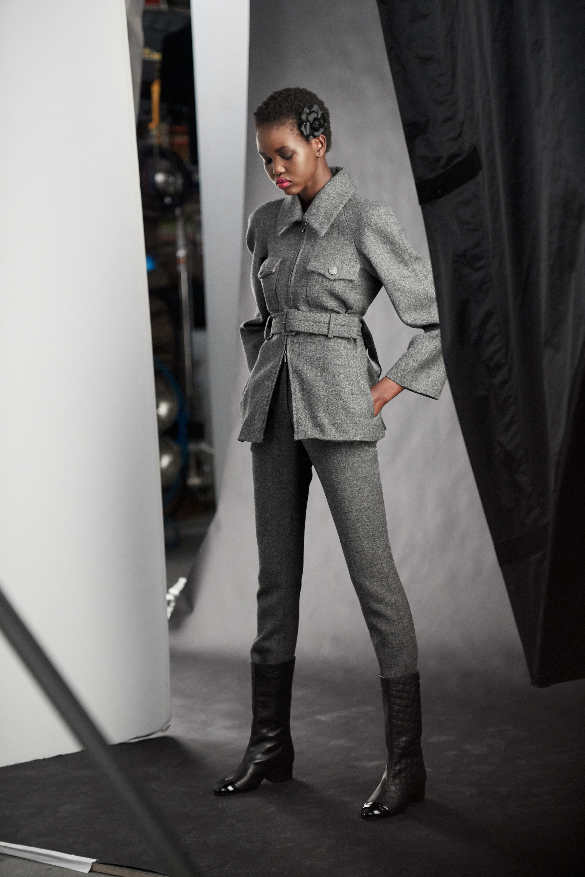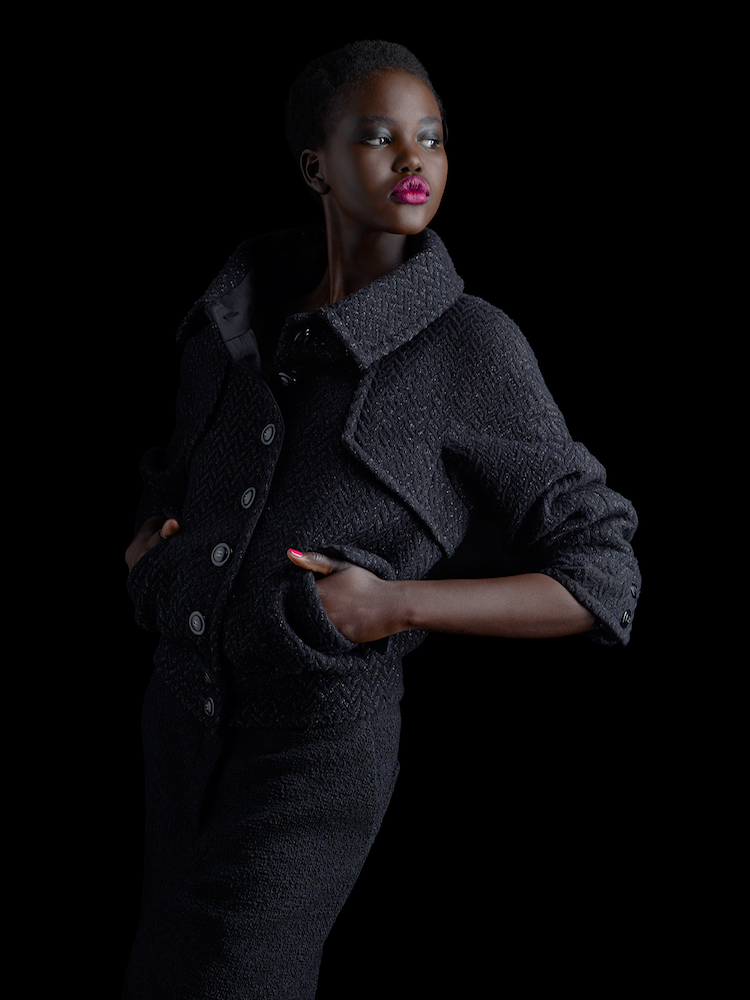 Adut Akech は、2018/19年秋冬 オートクチュールコレクションのランウェイショーでもフィナーレに登場しており、今最も注目を集めるモデルのひとり。今回、 Karl Lagerfeld 自らシンプルなモノクロームの背景で彼女にレンズを向けている。Adut Akech が披露したのは、エレガンスとモダニティをもつ Chanel のアリュールを湛えたコレクションのキールック。レッドとブルーのブレードでトリミングされたロング丈のツイードジャケットにニットスカートをあわせたスポーティーシックなスタイルやTシャツにラムスキンレザーを用いたシェブロンモチーフのコートとスカートを組み合わせたスタイリングなど、これからの季節に参考にしたいアイディアが満載。2018/19年秋冬 プレコレクションは、全国の Chanel ブティックで現在発売中だ。