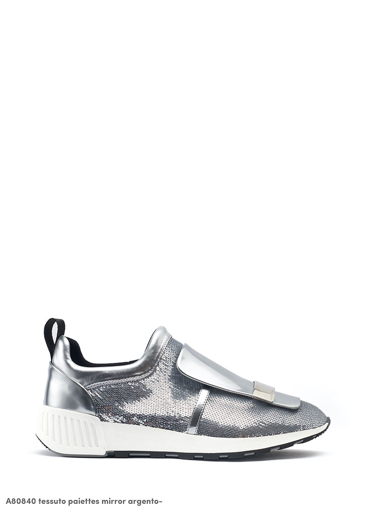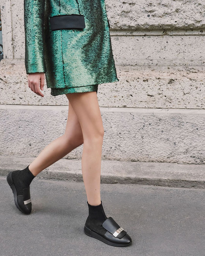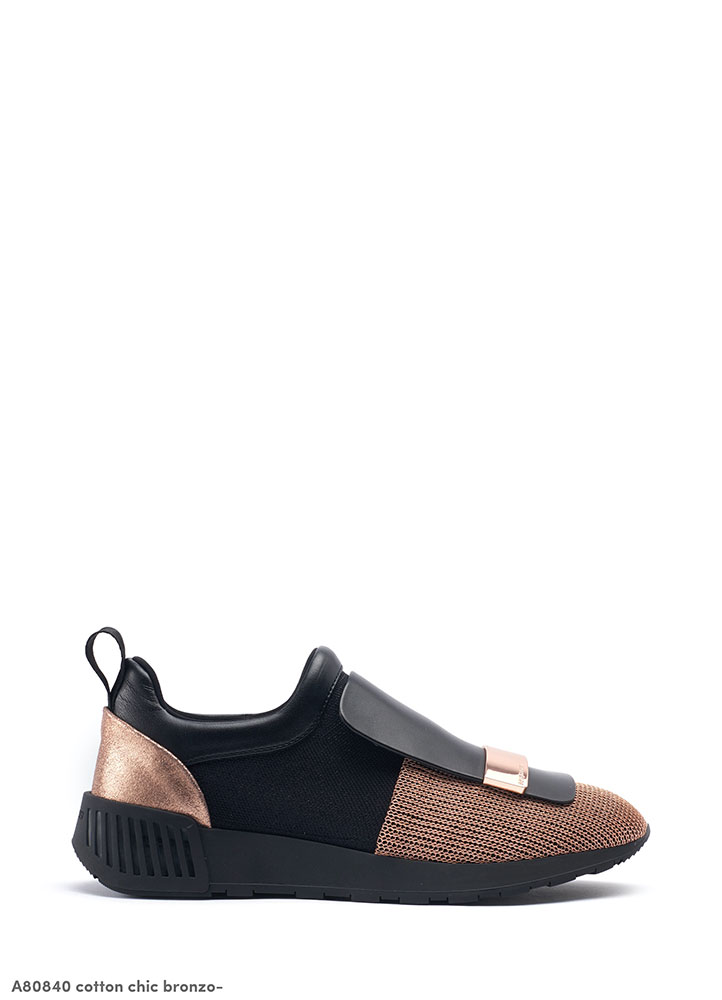 2018年春夏コレクションでデビューして以来、カラーとマテリアルのコンビネーションが人気を集める Sergio Rossi のスニーカー「sr1 RUNNING」。今回お目見えしたのは、ランニングスタイルを取り入れたソールに伸縮性に優れたメッシュ、ストレッチ素材で実現した軽量化など機能性は勿論、ナッパレザーやルレックスを編み込んだストレッチやコットン、ミラーレザー、スパンコールという多種多様な素材を用いることでデザイン性も抜群なハイブリッドスニーカー。アッパーには「sr1」コレクションのアイコンモチーフであるロングタンとメタルプレート。エレガントかつグラマラス、そしてスポーティーという三拍子が揃い、どんなシーンにも活躍してくれること間違い無しの一足だ。