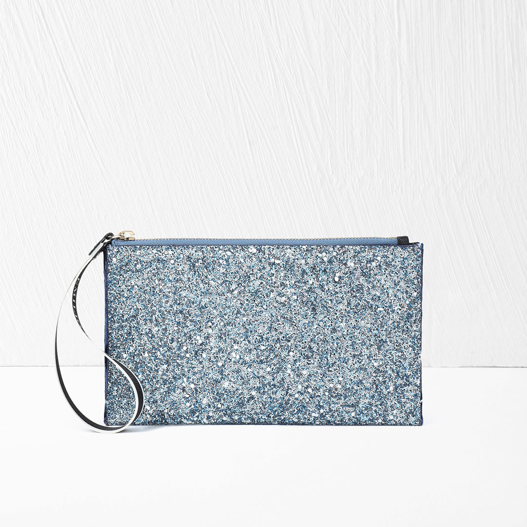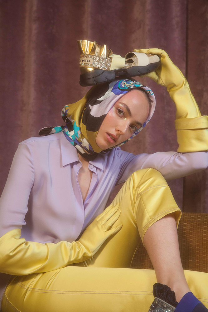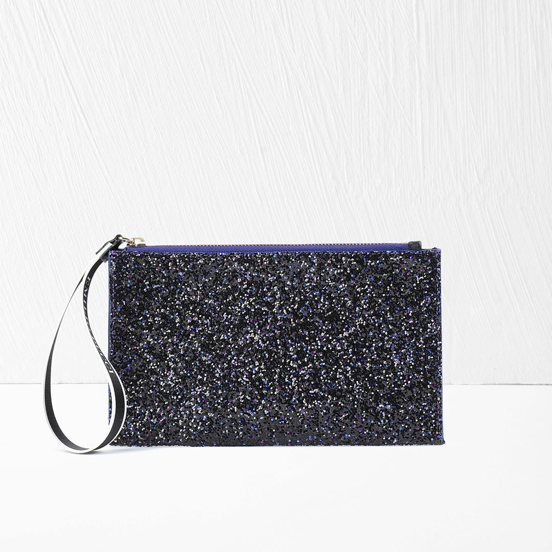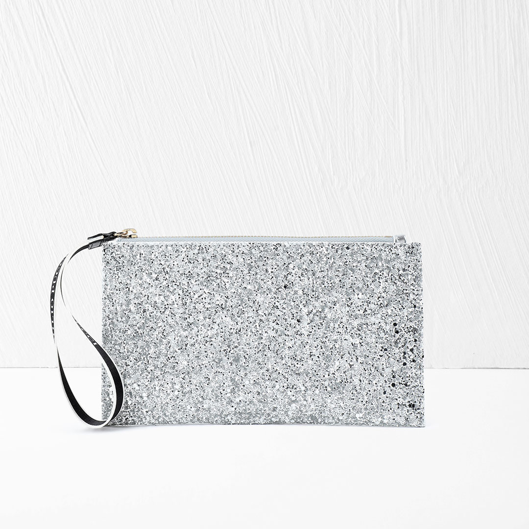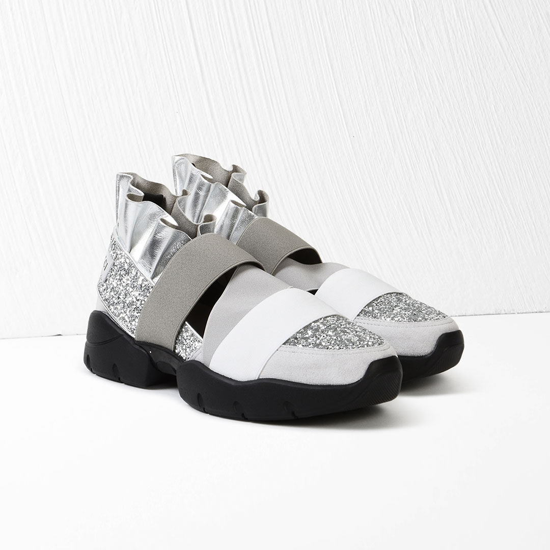 スニーカーとのコーディネートにもぴったりな、クラッチバッグも合わせてローンチ。同じく光り輝くグリッター施し、リストストラップには Emilio Pucci のブランドロゴが。ナイトアウトをよりグラマラスに仕上げてくれる、マストハブ アイテムを是非チェックして。