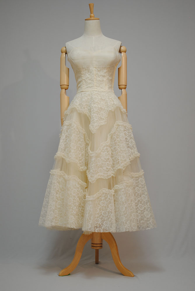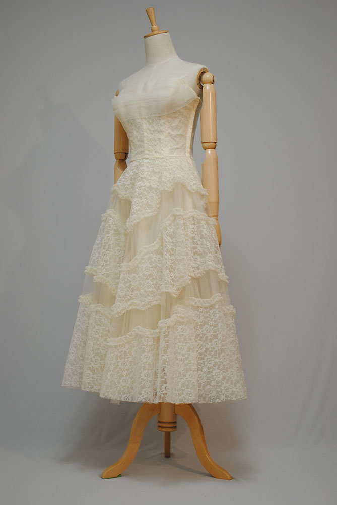 高級既製服『プレタポルテ』が誕生した時代。オーダードレスの時代から、既製ドレスの時代に代わり、女性のこだわりを形にしたデザインが多く登場。中でもトレンドになったのは、ウエスト位置が高めのハイウエストやエンパイアラインなど。リネンやコットンガーゼ生地などを使ったカジュアルなデザインも登場し、ドレスも多様化してゆく。伝説のファースト レディ、Jacqueline Kennedy (ジャクリーン・ケネディ) も時代を象徴する女性のひとり。彼女が身につけたドレスのように、清楚かつ品の良いデザインが人気を博した。