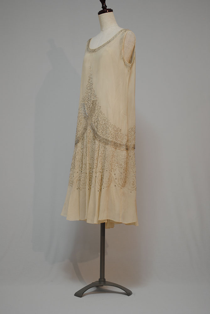 時代を象徴するのは、映画『華麗なるギャツビー』(2013) で Carey Mulligan (キャリー・マリガン) 演じるデイジーが着こなしていたようなパーティードレス。シルク素材をふんだんに使い、細部にはビーズ刺繍などきらびやかなアクセントを施しているのが特徴。アクセサリーもぐっとゴージャスに合わせて、一生に一度の晴れの日だからこそ誰よりも輝くドレスに身を包んで見るのはいかがだろう。