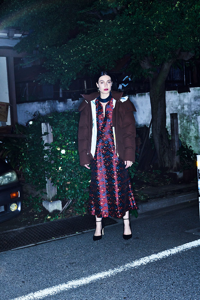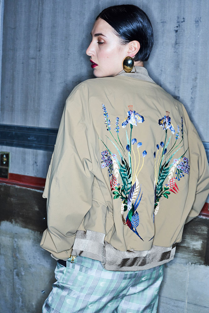 ALLTERRAIN コレクションの中でも特に高い保温性・快適性を誇る水沢ダウンジャケットは、メンズのシルエットを再構築することでオーバーサイズの新たなシェイプを獲得。ライナーにはデザイナー黒河内真衣子が、自身の2018年AWコレクション創作のために描き起こした植物柄がプリントされる。耐水性、防風性、 透湿性に加え、優れたストレッチ性で快適さとアクション性の高さを両立したMA-1ジャケットの背中には、ブランドのシグネチャーであるオリジナルのボタニカル柄が今季のカラーパレットで描かれた刺繍が施されている。その他、美しいシルエットを描くテーラーリングピースはウールのナチュラルな素材感と耐水・透湿性を兼ね備えた生地を採用することで、あくまでエレガントな都会的アクティブを体現する。