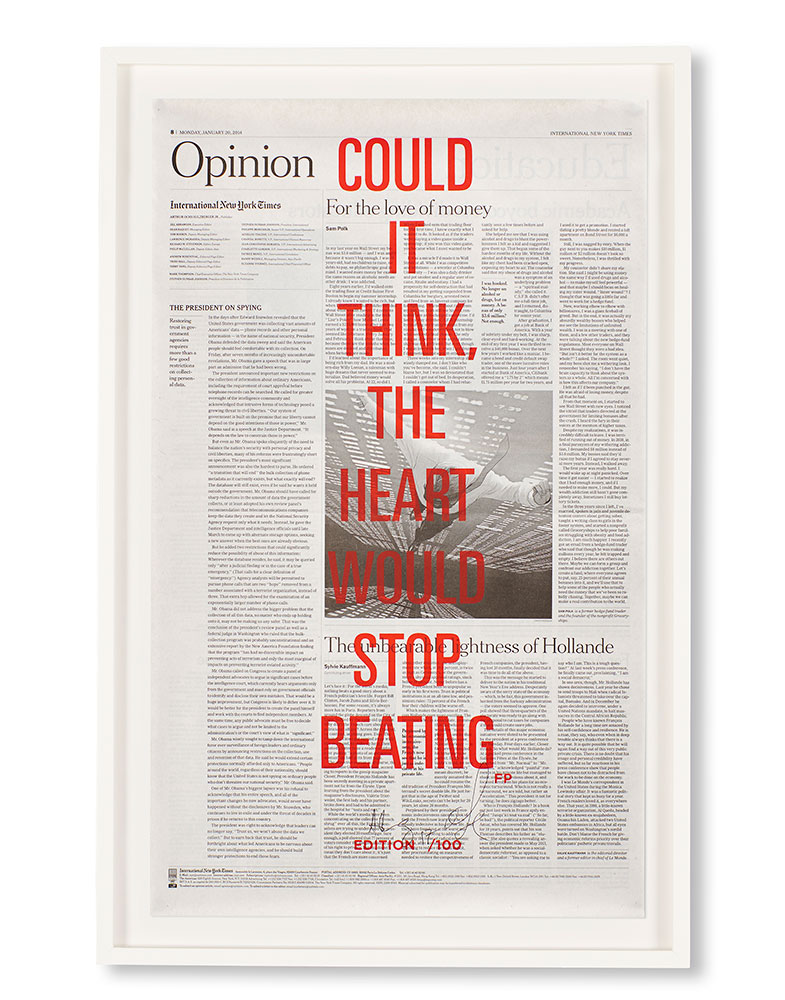 そんな彼らが立ち上げた出版プロジェクト「CHOPPED LIVER PRESS」が制作するポスターは、ニューヨーク・タイムズ紙からセレクトされた紙面に、作家らが影響やインスピレーションを受けた引用や格言がレイアウトされ、それぞれ100枚ずつシルクスクリーンで印刷したもの。土台となる紙面が1枚ずつ異なるページであることから、エディションが存在しながらも一枚一枚が完全なるユニーク・エディションとなっている。すべてにナンバリングとサインが入っており、本展で展示される27枚を含め、会場では複数種類から購入することが可能に。さらに今回の展示に際して、世界で唯一現存するドードーの卵が収められた写真に、 “THE FUTURE HAS AN ANCENT HEART” の言葉がシルバーで箔押された50枚限定のリミテッドポスターが特別制作され、会場にて先行販売される。完売必須のこちらのポスターもぜひチェックしてみてほしい。