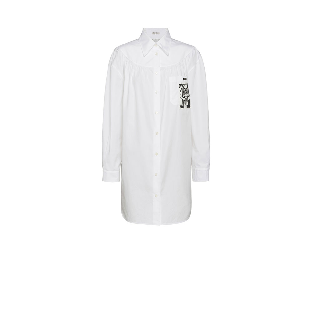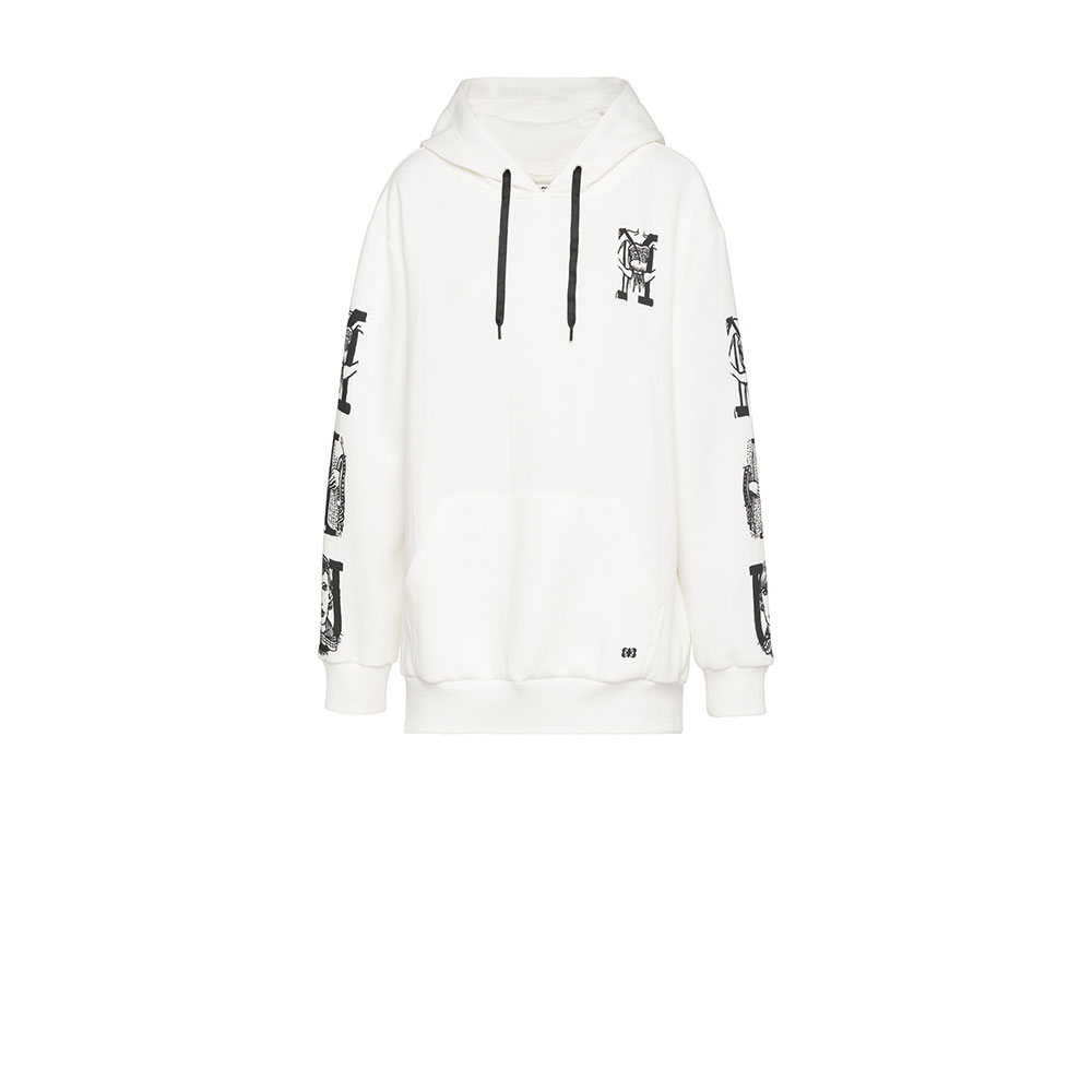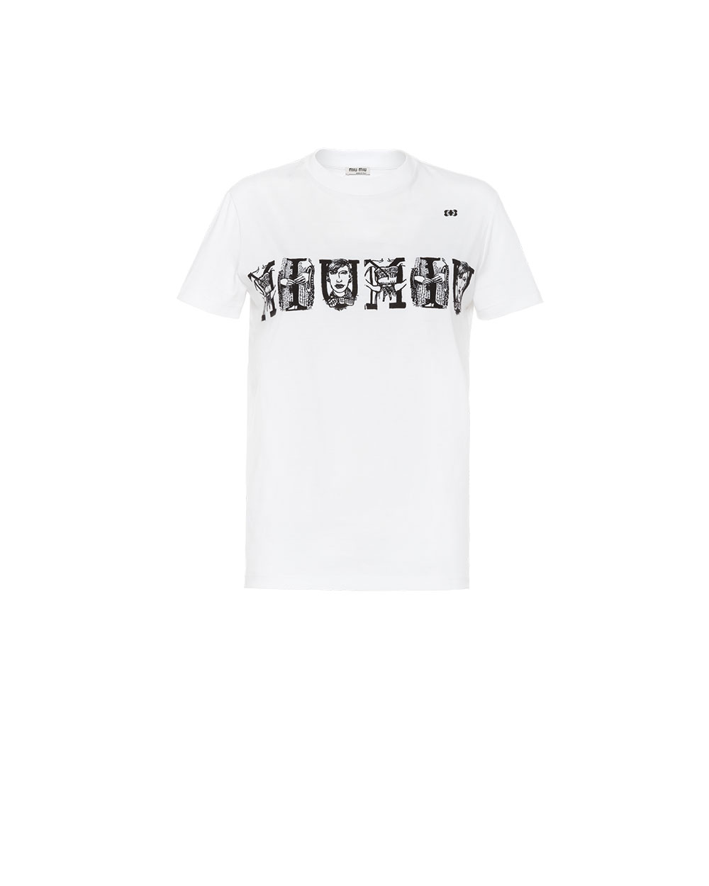 MIU MIU は、2018年秋冬コレクションの会場に Auguste Perret (オーギュスト・ペレ) 設計によるイエナ宮のホールを選び、女性の顔や身体とアルファベットを絡めて描いたイラストのポスターを吊り下げていた。このモノクロの独創的なイラストに登場したアルファベットが今回、プリントとしてポリンシャツやシャツドレス、フーディ、トラックパンツなどにあしらわれ、カプセルコレクションとなってお目見え。ブランド名が遊び心たっぷりに冠されたベーシックな白いコットンTシャツにも注目いただきたい。本コレクションは、MIU MIU の直営店(一部店舗を除く)と公式オンラインストアにて現在発売中。