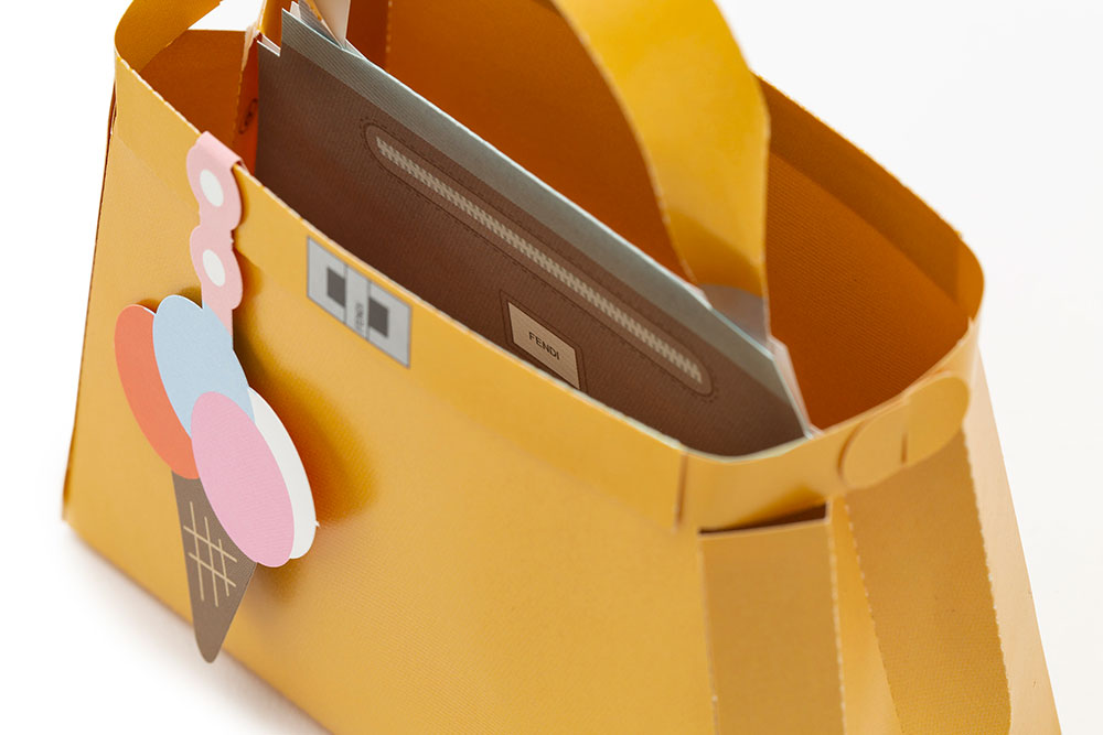 会場では、これまでの同プロジェクトで制作された Adele (アデル) や、Cara Delevingne (カーラ・デルヴィーニュ) ら6名の女性たちによる「PEEKABOO」も展示。セレブリティたちによる独創的なデザインもそうだが、なにより長年の歴史の中で Fendi が築いてきた職人たちのクラフツマンシップの賜物に思わずため息が出てしまうことだろう。展示の他にも、デジタル技術を駆使した「PEEKABOO」のメイド・トゥ・オーダーエリアも設けられ、来場者が自分だけの「PEEKABOO」をバーチャルに作り出し、無数のカラーコンビネーションやパターンを楽しむことも。さらに、週末は折り紙アーティストフチモト ムネジによるスペシャルなペーパークラフトのワークショップも開催される。メンバーシップに登録すれば、フルーツやジェラートモチーフのチャームもカスタマイズし、遊び心あふれた自分だけの「MICRO PEEKABOO」を作ることのできるペーパークラフトのワークショップに参加することも可能だ。まさに世代を超えて楽しむことのできるイベント盛りだくさんなので、ぜひ足を運んでみてほしい。
