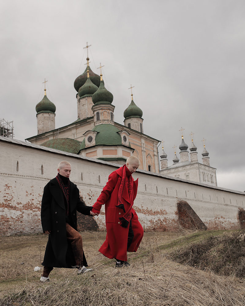 Anton Lisin はロシア正教会の首都、セルギエフ・ポサードの出身で哲学、宗教、文化とロシアのアンダーグラウンドの音楽シーンやロシアの社会情勢などからインスピレーションを得たコレクションを発表している。2018AWコレクションでは、「The Shining」をテーマに自身が生まれ育った90年代のロシアの子供たちからインスパイアを受け、過酷な環境下でも心のうちに輝きを宿した無垢な心を表現した。