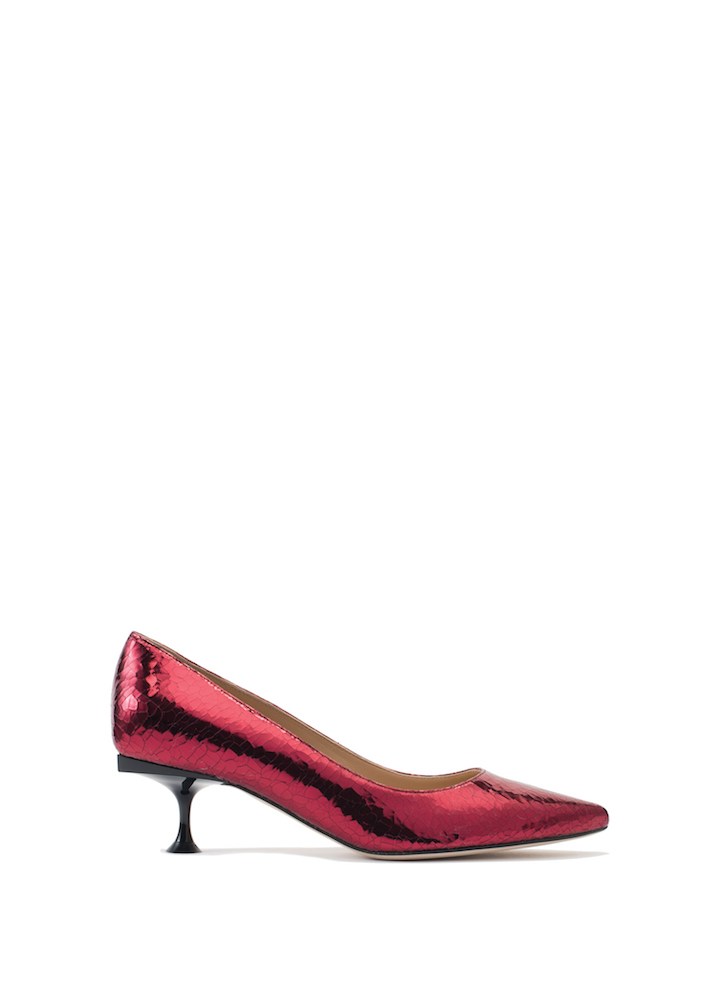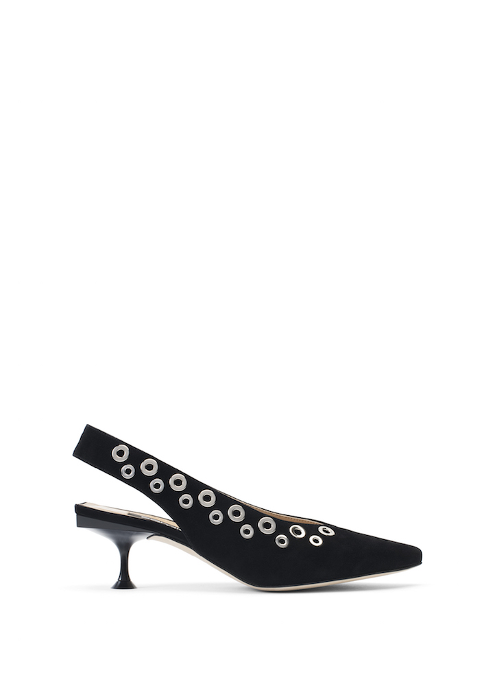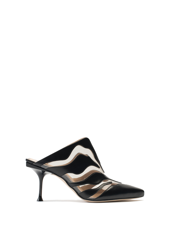 今回のポップアップショップのメインとなるのは、2018年秋冬シーズンにデビューを果たす新コレクション「sr MILANO」。イタリア発のラグジュアリーシューズブランドらしく、ミラノの街とそこに暮らす女性たちの魅力に敬意を表したコレクションに仕上げられている。シグネチャーとなるのは、細いストレートヒールと踵頂部のスクエアライン。バックサイドに配されたロゴを刻印したメタルプレートがモダンな印象を与えるデザインとなっている。